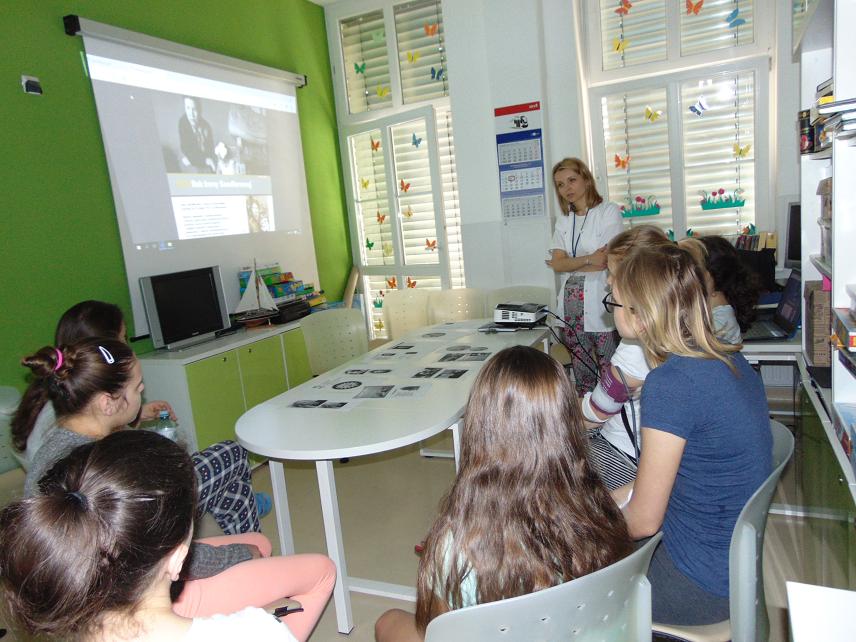 Rok 2018 został ogłoszony Rokiem Ireny Sendlerowej i to właśnie z tej okazji zaprosiliśmy dzieci i młodzież na spotkanie, którego celem było przybliżenie postaci Pani Ireny. Komentując przedstawianą prezentację skupialiśmy się na heroicznej działalności tej kobiety. W przystępny sposób nakreśliliśmy sytuację Żydów w Polsce w czasie II wojny światowej i tuż przed jej wybuchem i wyjaśniliśmy sposoby działania, pozwalające na uratowanie około 2,5 tys. dzieci pochodzenia żydowskiego. Uzyskaną wiedzę uczestnicy spotkania wykorzystali w quizie sprawdzającym wiadomości. Uczniowie, którzy musieli pozostać w swoich salach mieli możliwość pracy indywidualnej.