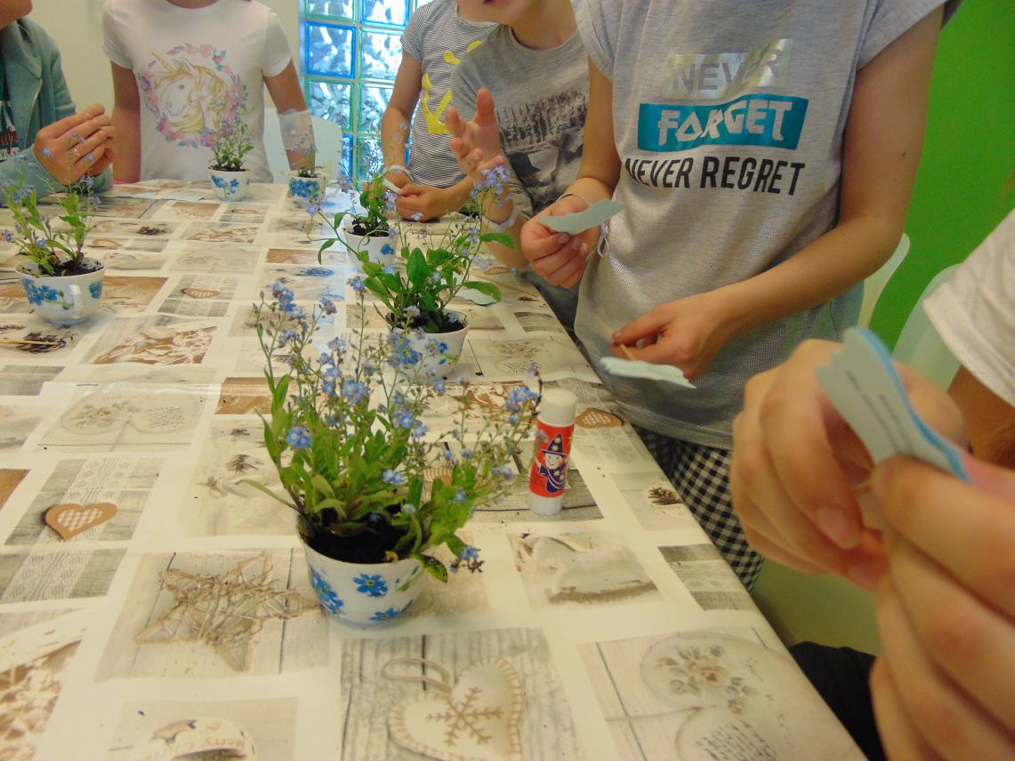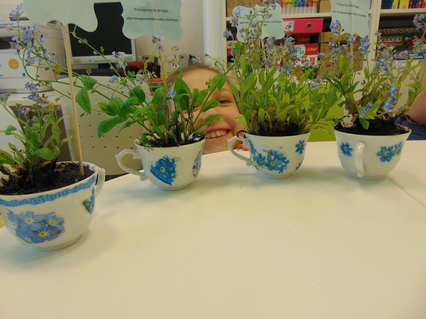 15 maja 2019 roku świętowaliśmy bardzo sympatyczny Dzień Polskiej Niezapominajki. Była to okazja do poznania legendy związanej z niebieskim kwiatkiem oraz urokliwych wierszyków opiewających tę niepozorną roślinkę. Zaraz potem przyszedł czas na praktyczne działania : najpierw ozdobiliśmy motywami kwiatowymi porcelanowe filiżanki służące nam za doniczki, a potem wsadziliśmy w nie żywe okazy roślin. Wszyscy mogli zabrać do domu te oryginalne kompozycje kwiatowe zgodnie z hasłem spotkania: ” Przyczyńmy się do tego, by niezapominajka rosła u każdego”.