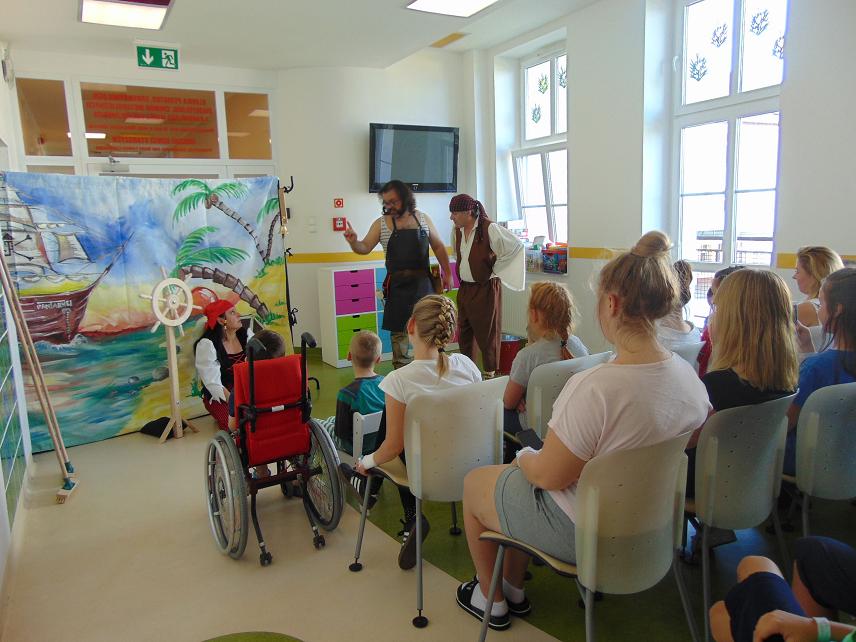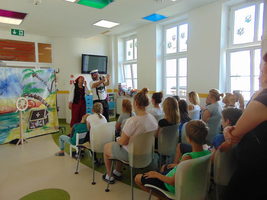 W szpitalu przy ul. Unii Lubelskiej 1 przedłużyliśmy obchody Dnia Dziecka o jeszcze jeden dzień zapraszając 3 czerwca z przedstawieniem Teatr Rozmaitości „Gwitajcie”. Dzieciaki mogły obejrzeć fantastyczną sztukę „Morskie gadki małej piratki”. Było wesoło, kolorowo, śpiewnie, szantowo i śmiesznie. Wszystkim się bardzo podobało to spotkanie z aktorami, więc serdecznie im dziękujemy.