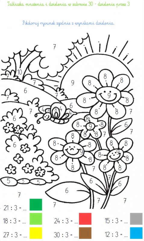 Rozwiąż zadanie matematyczne – wykonaj obliczenia i pokoloruj obrazek ( karta nr 3)