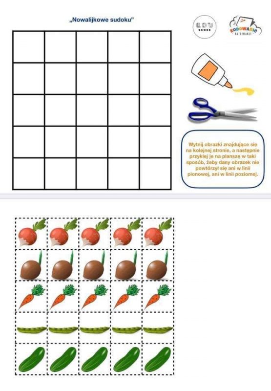 Na koniec dzisiejszej pracy, spróbuj rozwiązać Nowalijkowe Sudoku. Instrukcja pracy znajduje się na karcie nr 5