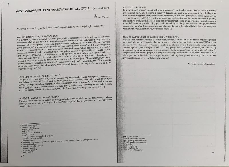 Temat: W poszukiwaniu renesansowego ideału życia.