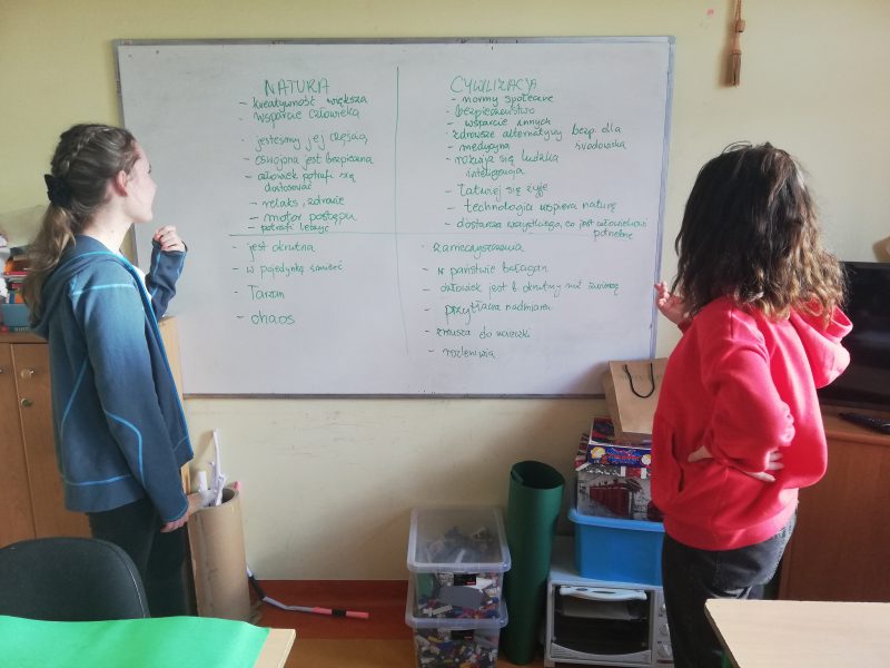 Ciągły proces poznawczy, jakim jest myślenie, towarzyszy nam od pierwszych do ostatnich chwil. Lubimy ten proces, oj lubimy. Myślę, więc jestem. A jest listopad – miesiąc poświęcony nie tylko pogłębionej refleksji, ale też filozofii. Korzystając z tego cudownego zbiegu okoliczności na lekcjach filozofii i języka polskiego odbyła się debata na temat „Natura, czy cywilizacja?”. W ferworze cywilizowanej (nomen omen) dyskusji uczniowie zgromadzili silne argumenty przemawiające