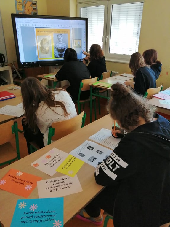 8 marca w związku z Dniem Kobiet nasi uczniowie uczestniczyli w zajęciach pt. „Słynne kobiety na przełomie wieków”. Poznali historię i tradycje święta w Polsce i na świecie. Obejrzeli prezentację multimedialną przybliżającą sylwetki znanych pań w różnej przestrzeni czasowej. Na koniec zajęć rozwiązywali tematyczny quiz wiedzy.