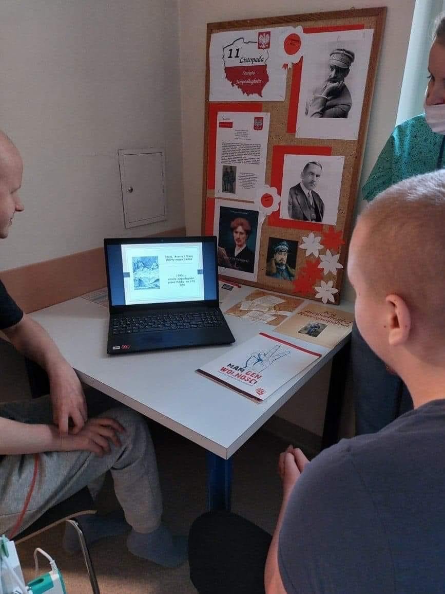 W tym roku świętowaliśmy wspólnie z Panem Jerzym Sołtysiakiem, p.o. Zachodniopomorskiego Kuratora Oświaty, Panią Agnieszką Strojnowską z Kuratorium Oświaty oraz z Panią Anną Kaczkiełło z Urzędu Miasta Szczecin, którzy przybyli na patriotyczny poranek w szpitalu Zdroje. O 11.11 wspólnie odśpiewaliśmy „Mazurek Dąbrowskiego”. Następnie nasi uczniowie-pacjenci dostarczyli nam mnóstwo wzruszeń podczas występu, który był niezwykłą lekcją historii i prezentacją Ich talentów…