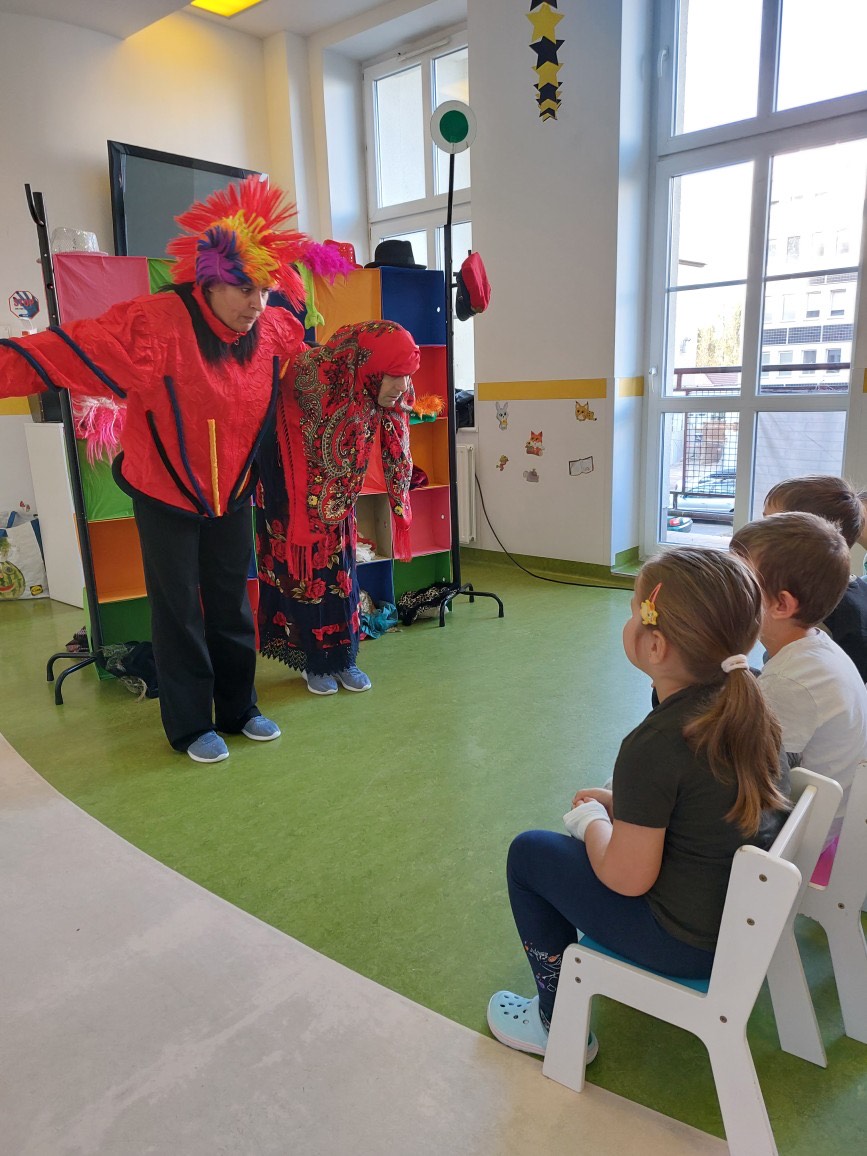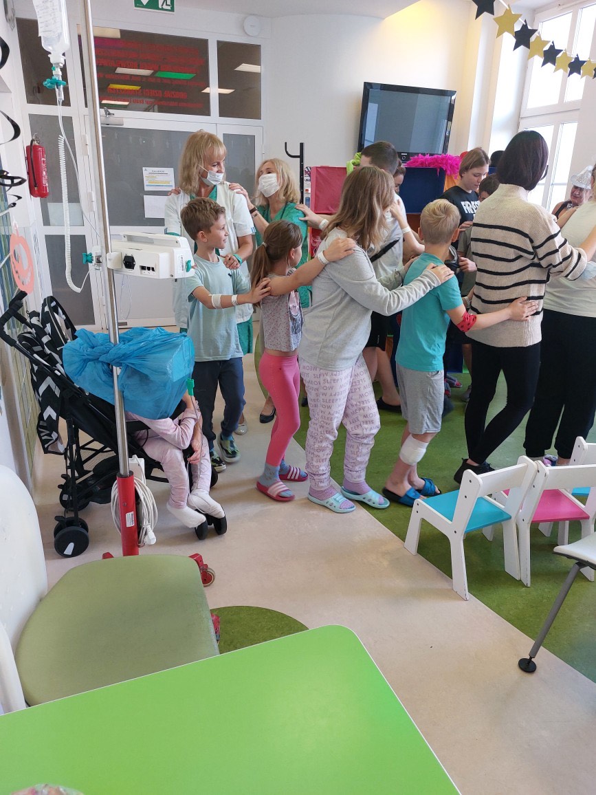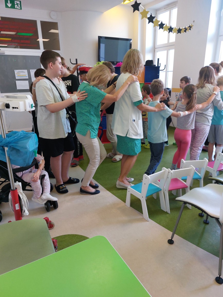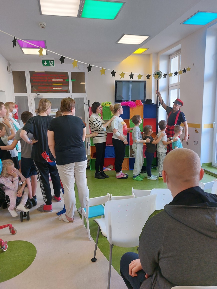 27 października w szpitalu przy ul. Unii Lubelskiej gościliśmy Teatr Rozmaitości „Gwitajcie” z przedstawieniem zatytułowanym „JuliJan Dzieciom”. Było to fantastyczne połączenie tego co najlepsze, w twórczości dla dzieci, Juliana Tuwima i Jana Brzechwy. Spektakl przyjął formę mocno interakcyjną i był to wielki atut tego spotkania, z niesamowitymi aktorami, którzy zachwycili obecnych już od pierwszych minut spektaklu! Pacjenci z kilku oddziałów szpitalnych zebrani na korytarzu pediatrii, ochoczo śpiewali , „wyciągali rzepkę”, i tworzyli lokomotywę. Były nawet takie momenty, że widownia dziecięca świeciła pustkami, a na krzesełkach siedzieli tylko… rodzice. Na koniec każdy mógł poczęstować się cukierkami.