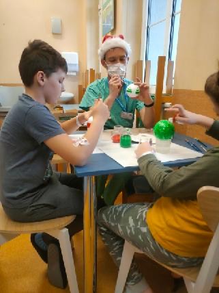 Mikołajkowe szaleństwo zaczęliśmy od samego rana warsztatami artystycznymi, na których zdobiliśmy styropianowe bombki i gipsowe figurki.