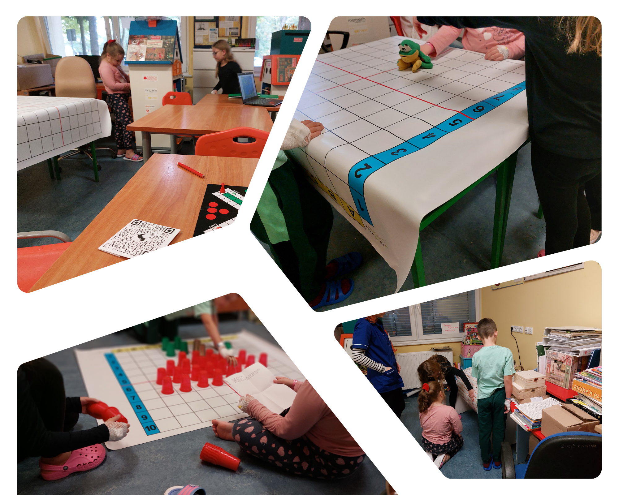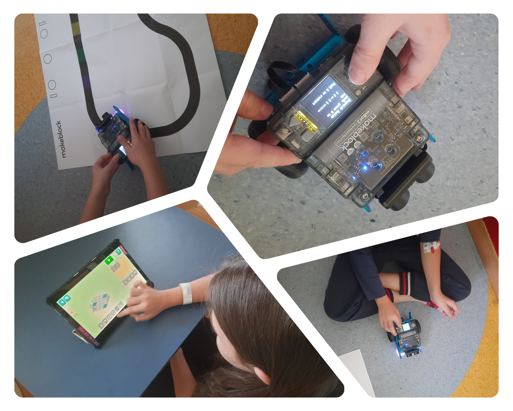 Zawiłe pokoje zagadek, to oczywiście nie jedyne atrakcje jakie wymyśliliśmy dla naszych podopiecznych. Otóż i w tym roku elementy programowania i kodowania zawitały na niemal wszystkich lekcjach. Uczniowie uczyli się chociażby budowy liści poprzez rozkodowywanie i kolorowanie tajnych kodów. Magia kodowania wkradła się również na lekcje z edukacji wczesnoszkolnej jak i dosłownie wyjechała na korytarze szpitalne podczas nauki programowania z wykorzystaniem robotów.