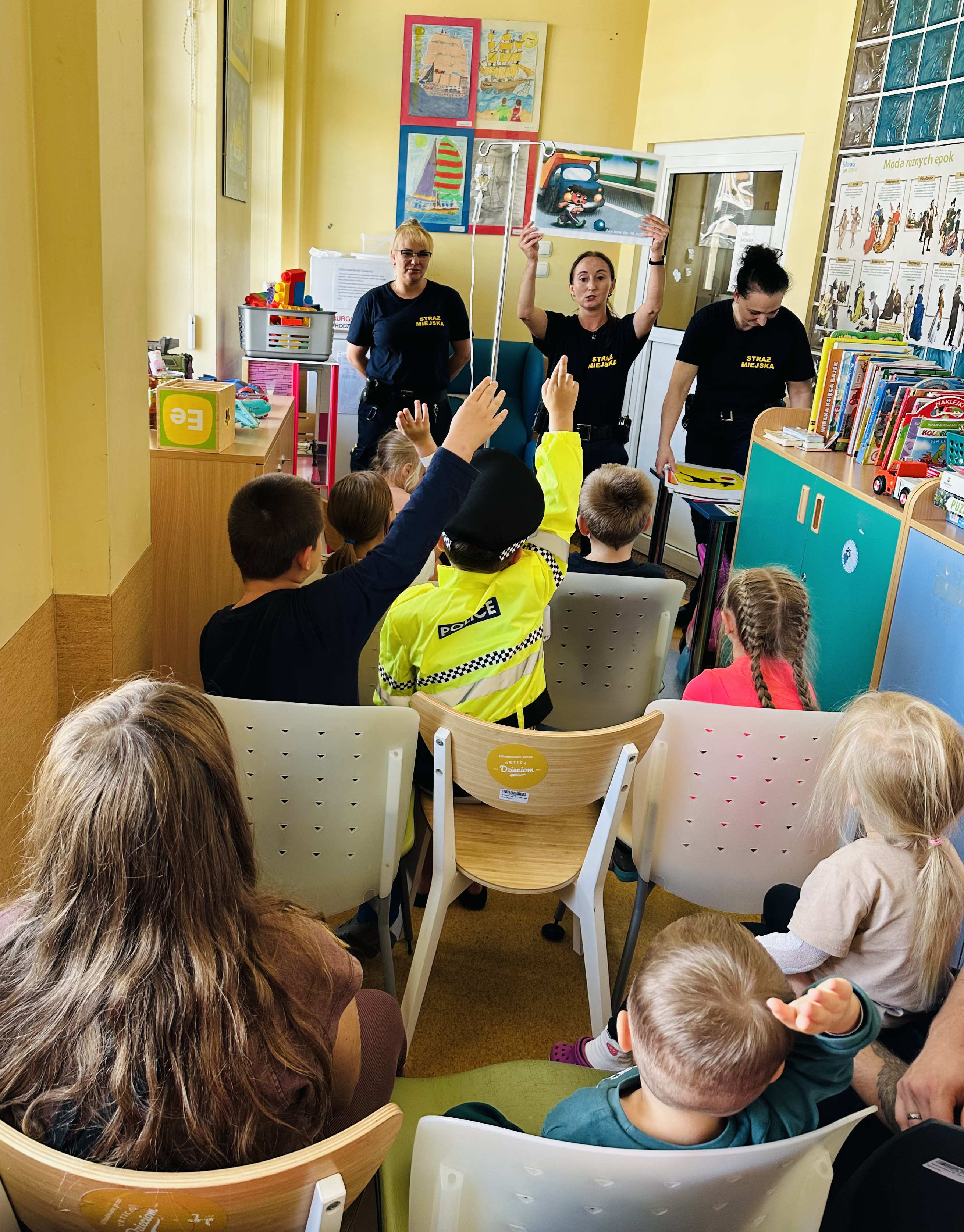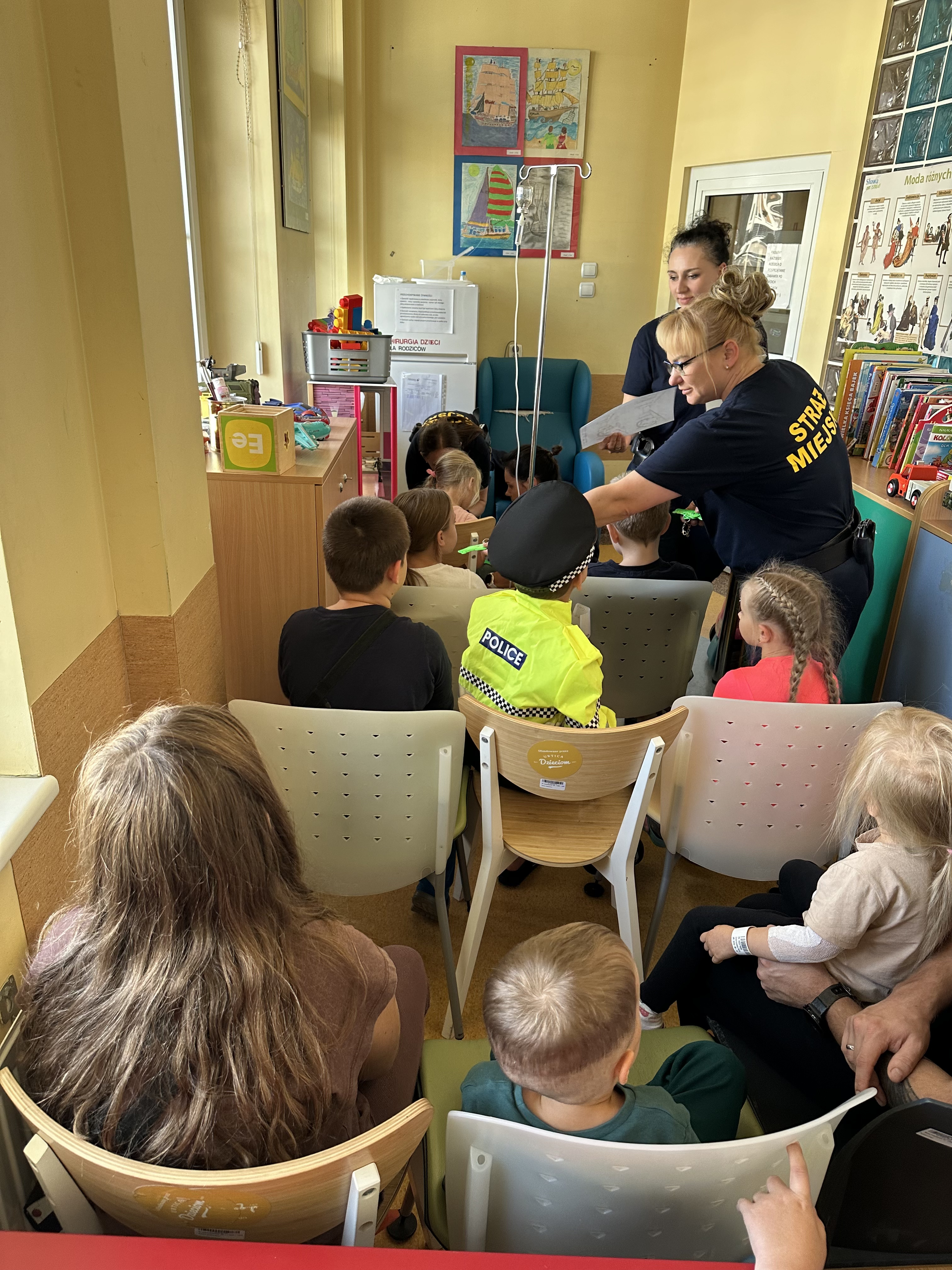 W szpitalu przy Unii Lubelskiej nasi najmłodsi uczniowie spotkali się z Paniami ze Straży Miejskiej. Wysłuchali ważnego wykładu o tym, jak bezpiecznie zachowywać się na drodze. W nagrodę za aktywność otrzymali odblaskowe zawieszki, kolorowanki tematyczne oraz plany lekcji z numerami alarmowymi.