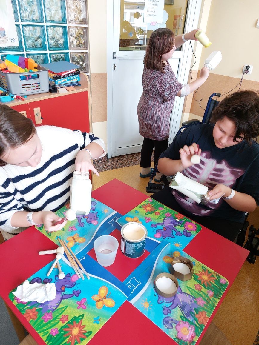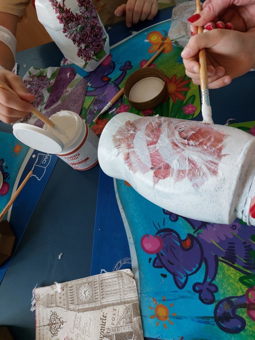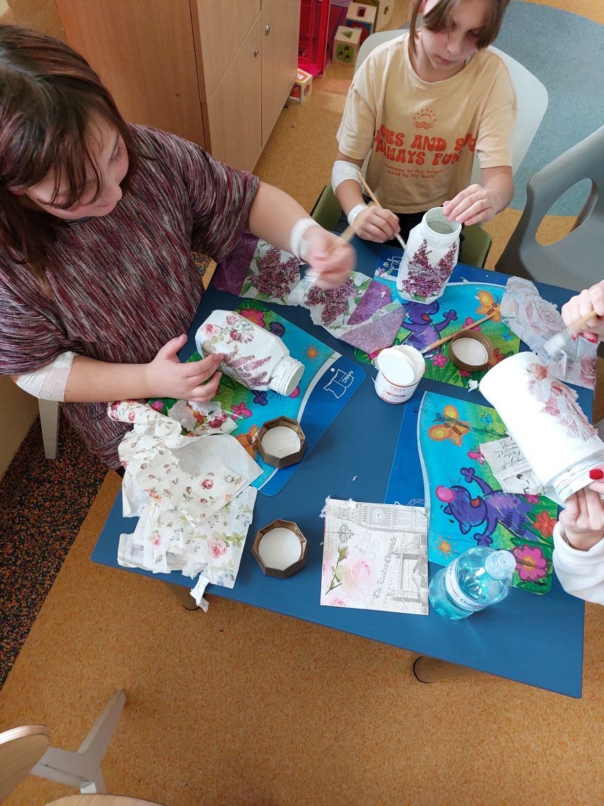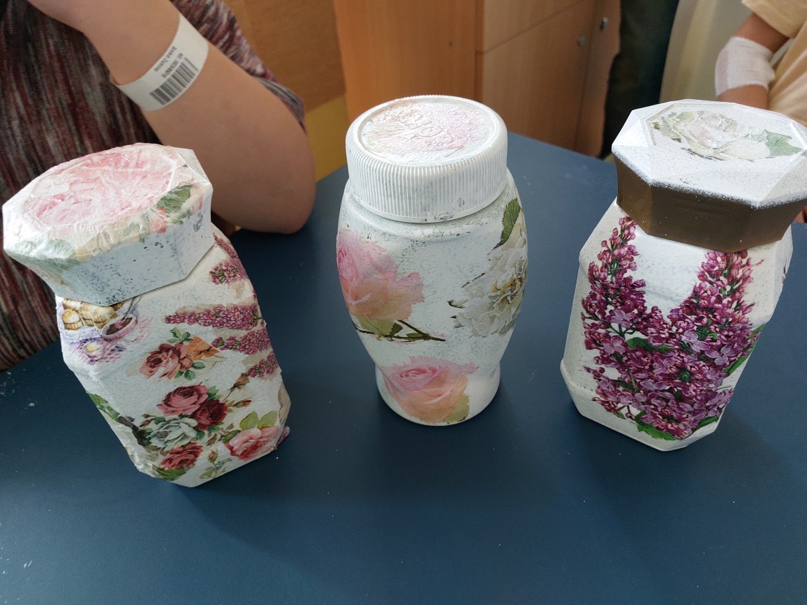 25 października w SPSK nr 1 na oddziale chirurgii i pediatrii miały miejsce pierwsze warsztaty z cyklu ” Coś z niczego”. Główną ideą zajęć jest pokazanie, jak z przedmiotu, który trafiłby do kosza na śmieci, można stworzyć oryginalny i niepowtarzalny pojemnik na wszystko. Wykorzystaliśmy technikę decoupagu idealną do przekształcenia zwyczajnego słoika po kawie w „cacko”. Każdy uczestnik artystycznego spotkania mógł zabrać swoje dzieło do domu, jako nietypową ” pamiątkę” z pobytu w szpitalu.