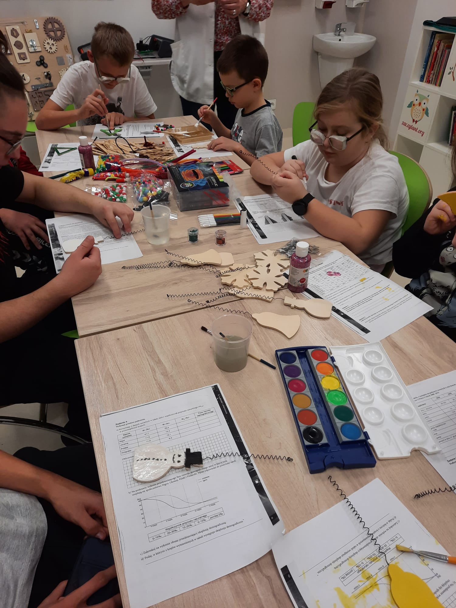 Warsztaty plastyczne okazały się strzałem w dziesiątkę! Dzieci tworzyły magiczne ozdoby świąteczne z użyciem różnorodnych materiałów. Ich kreatywność nie znała granic, a efekty ich pracy były niesamowite.