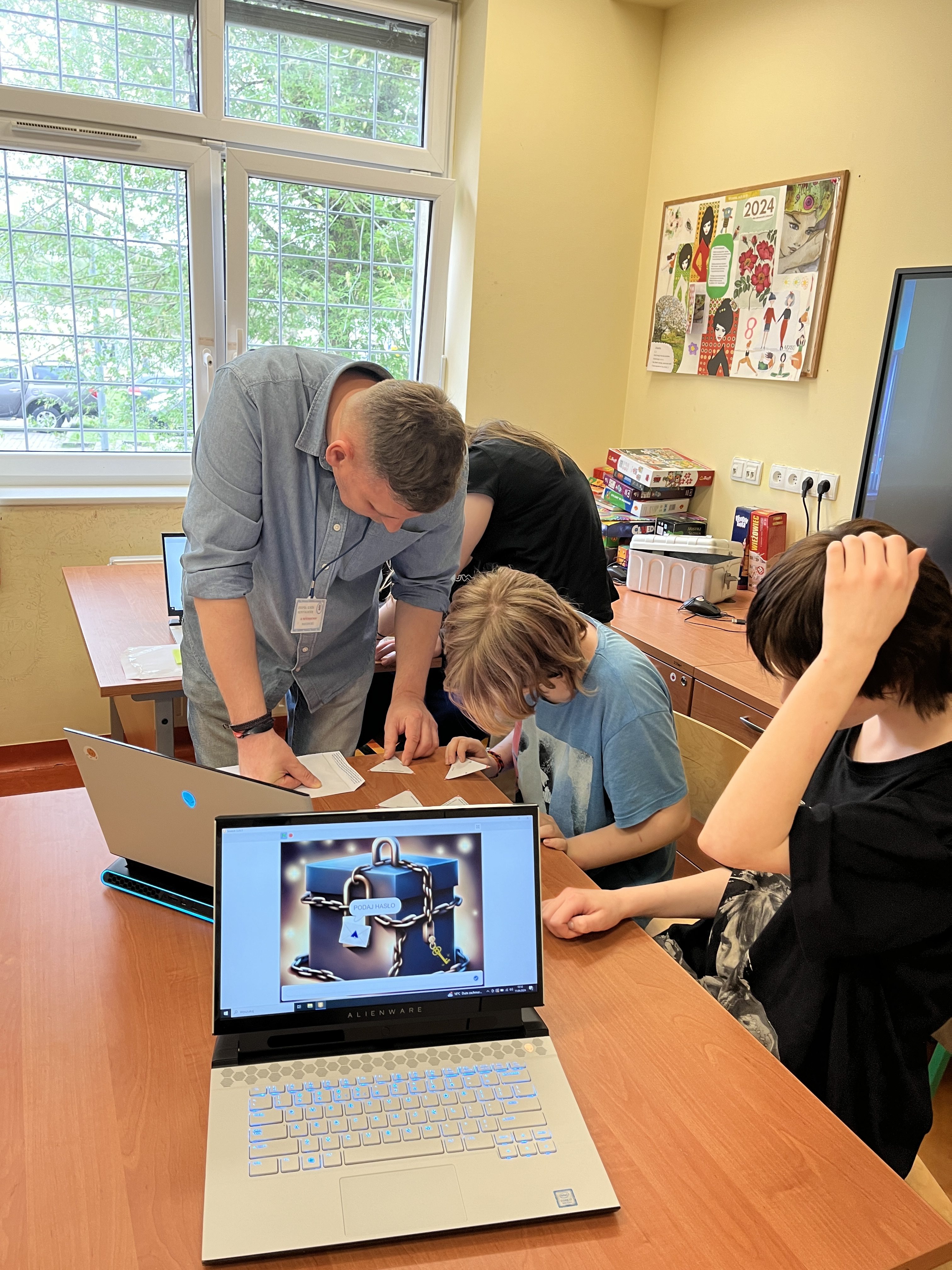 Tym razem skupiliśmy się na układzie oddechowym. Ale zamiast prezentacji czy suchych wykładów, postanowiliśmy zaserwować naszym uczniom niezapomniane przeżycia. Poprzez użycie nowoczesnej technologii w tym napisanej przez naszych nauczycieli grze komputerowej „przenieśliśmy” uczniów do laboratorium, gdzie szalony haker uwięził ich, zmuszając do rozwiązania szeregu zagadek i zadań.