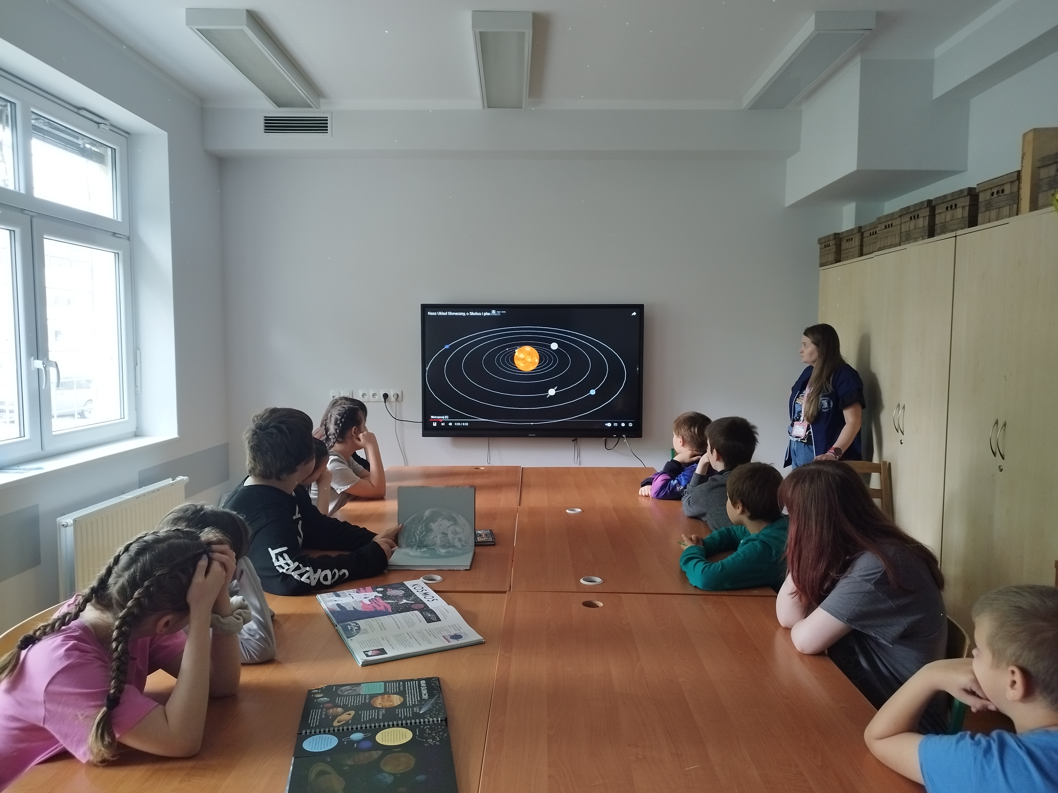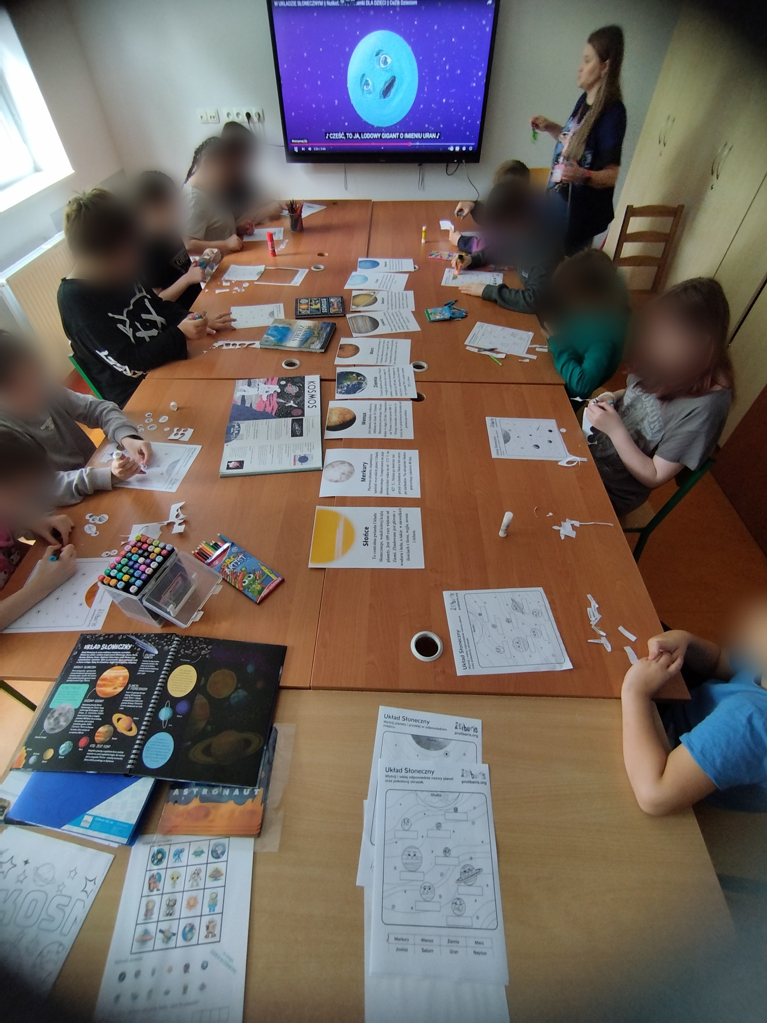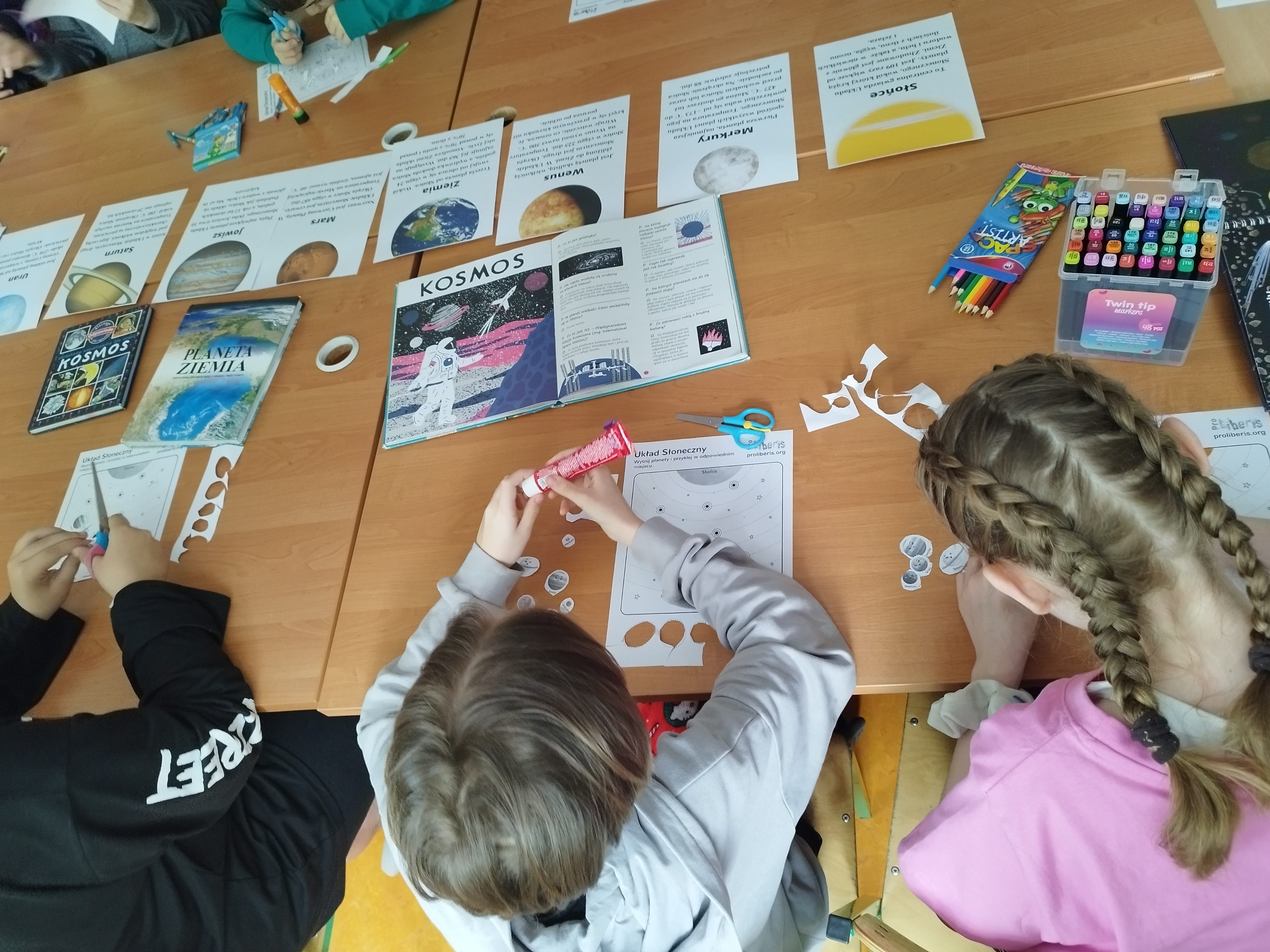 Uczniowie poznawali planety Układu Słonecznego – śpiewali edukacyjne piosenki, rozwiązywali zagadki i tworzyli własne modele planet. Starsi uczniowie zgłębiali historię odkryć astronomicznych, oglądali prezentacje multimedialne i poznali postacie takie jak Mikołaj Kopernik, Johannes Kepler i Galileusz.