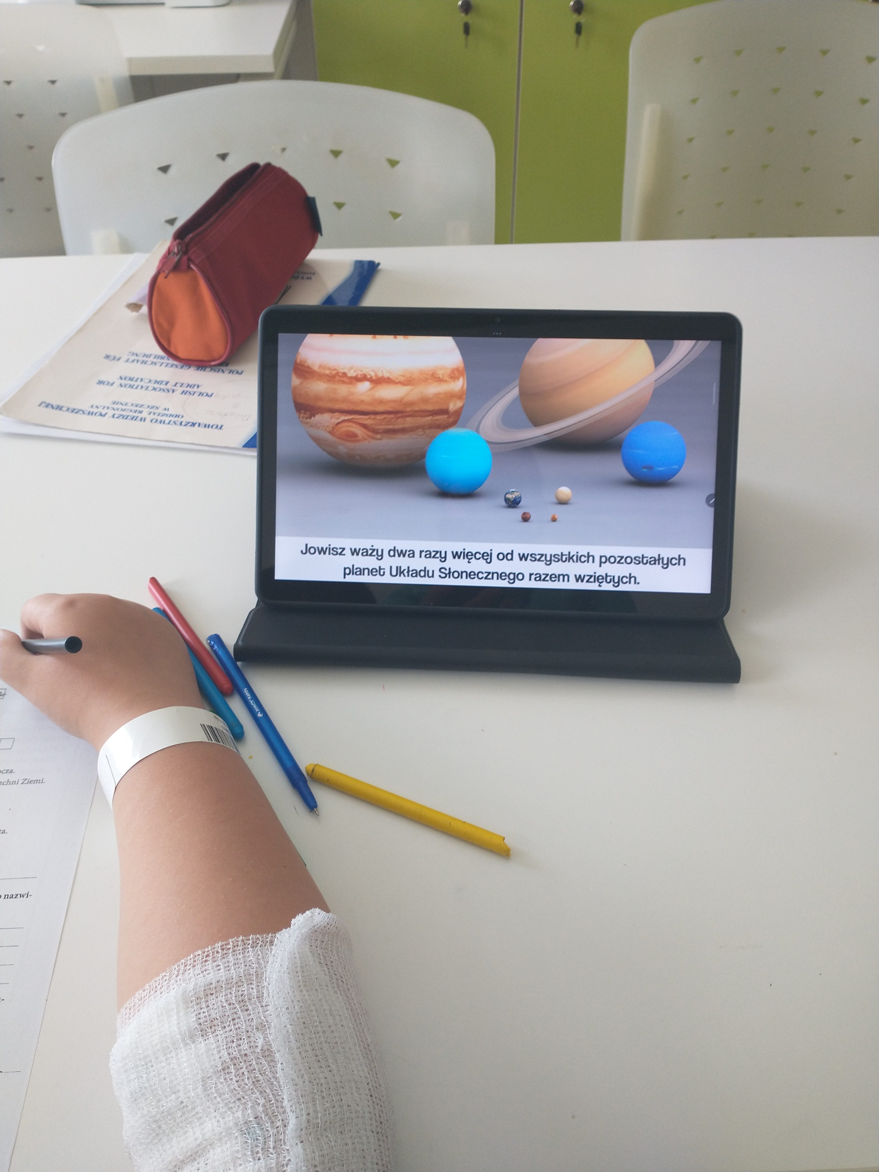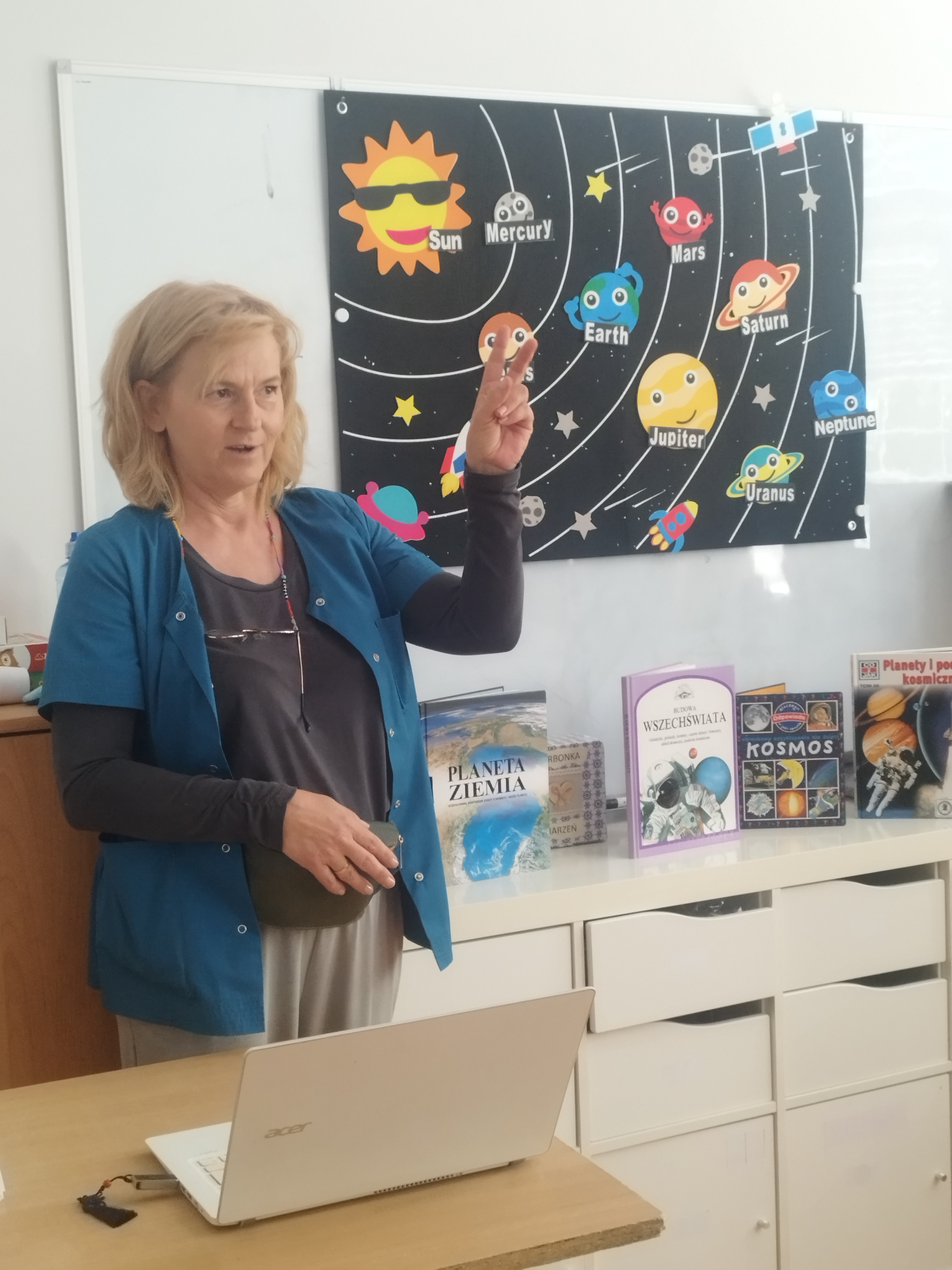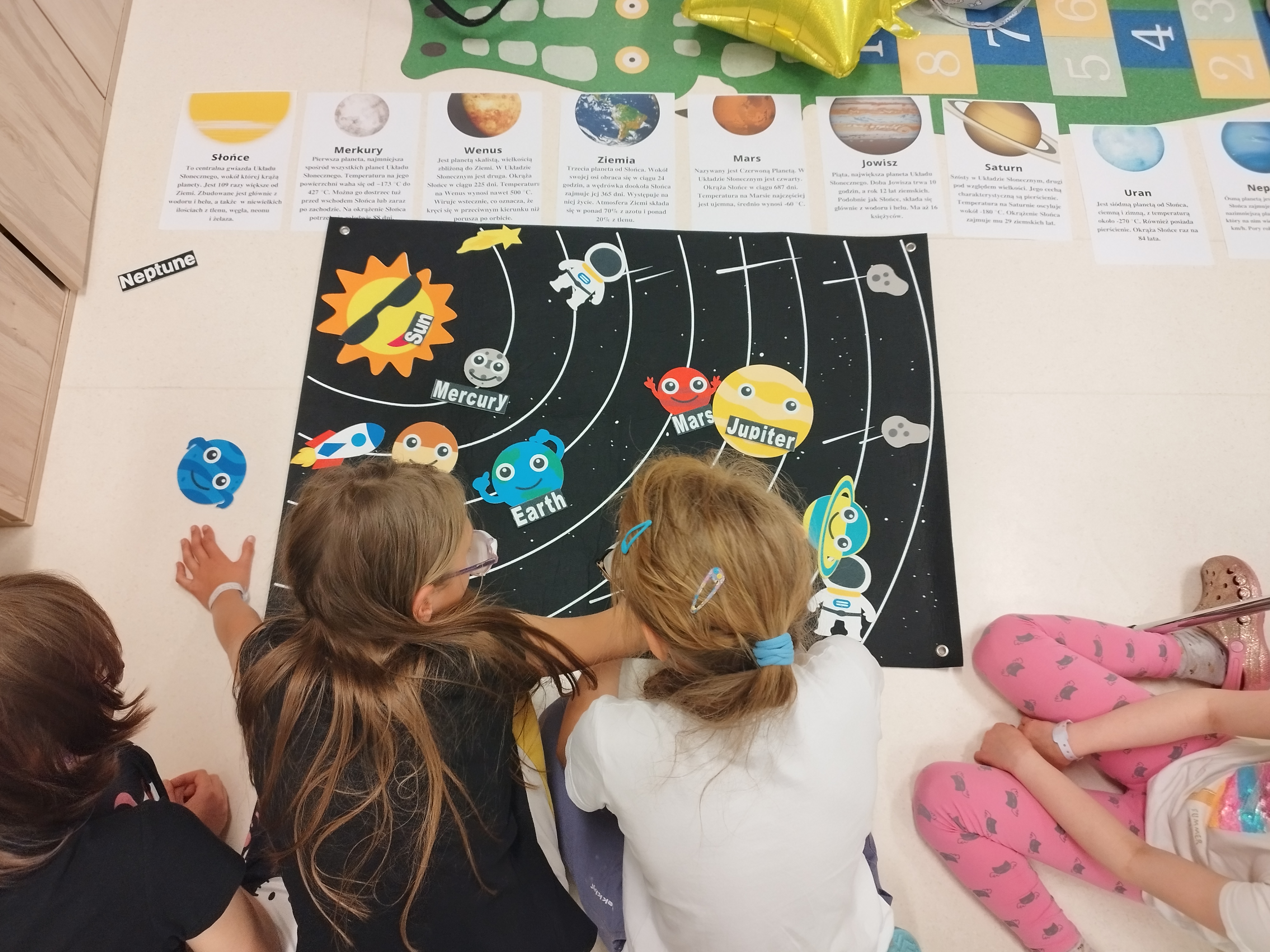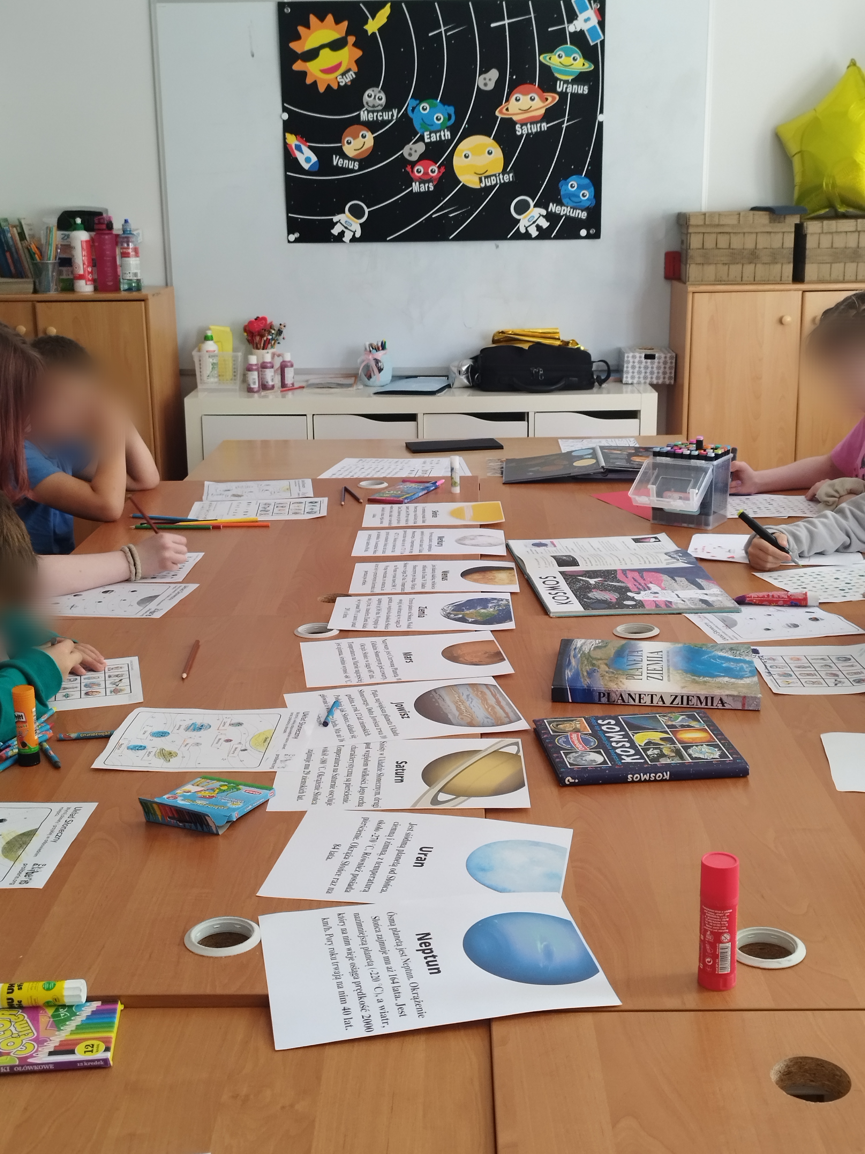 Uczniowie poznawali planety Układu Słonecznego – śpiewali edukacyjne piosenki, rozwiązywali zagadki i tworzyli własne modele planet. Starsi uczniowie zgłębiali historię odkryć astronomicznych, oglądali prezentacje multimedialne i poznali postacie takie jak Mikołaj Kopernik, Johannes Kepler i Galileusz.
