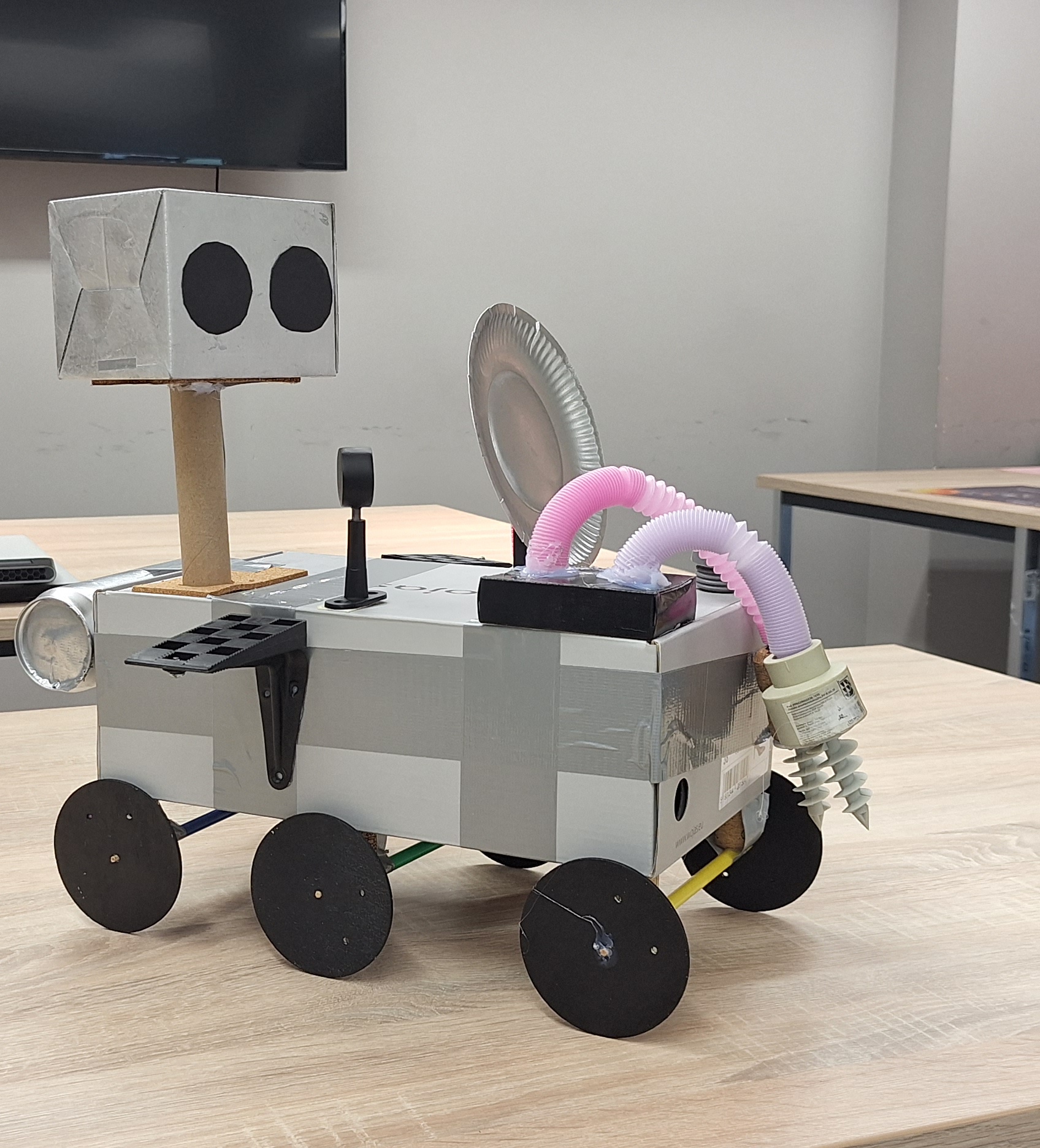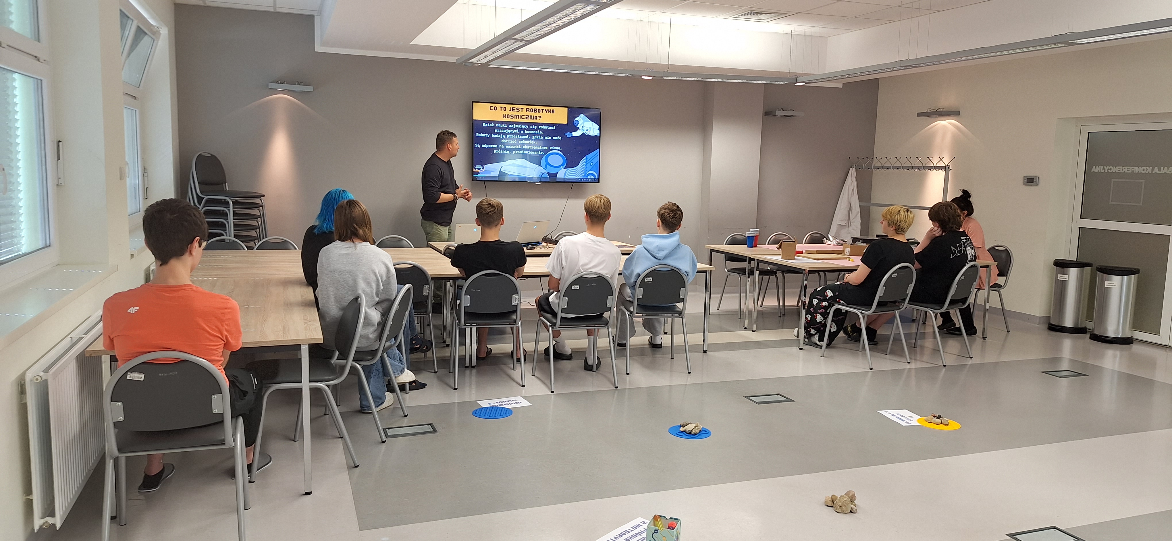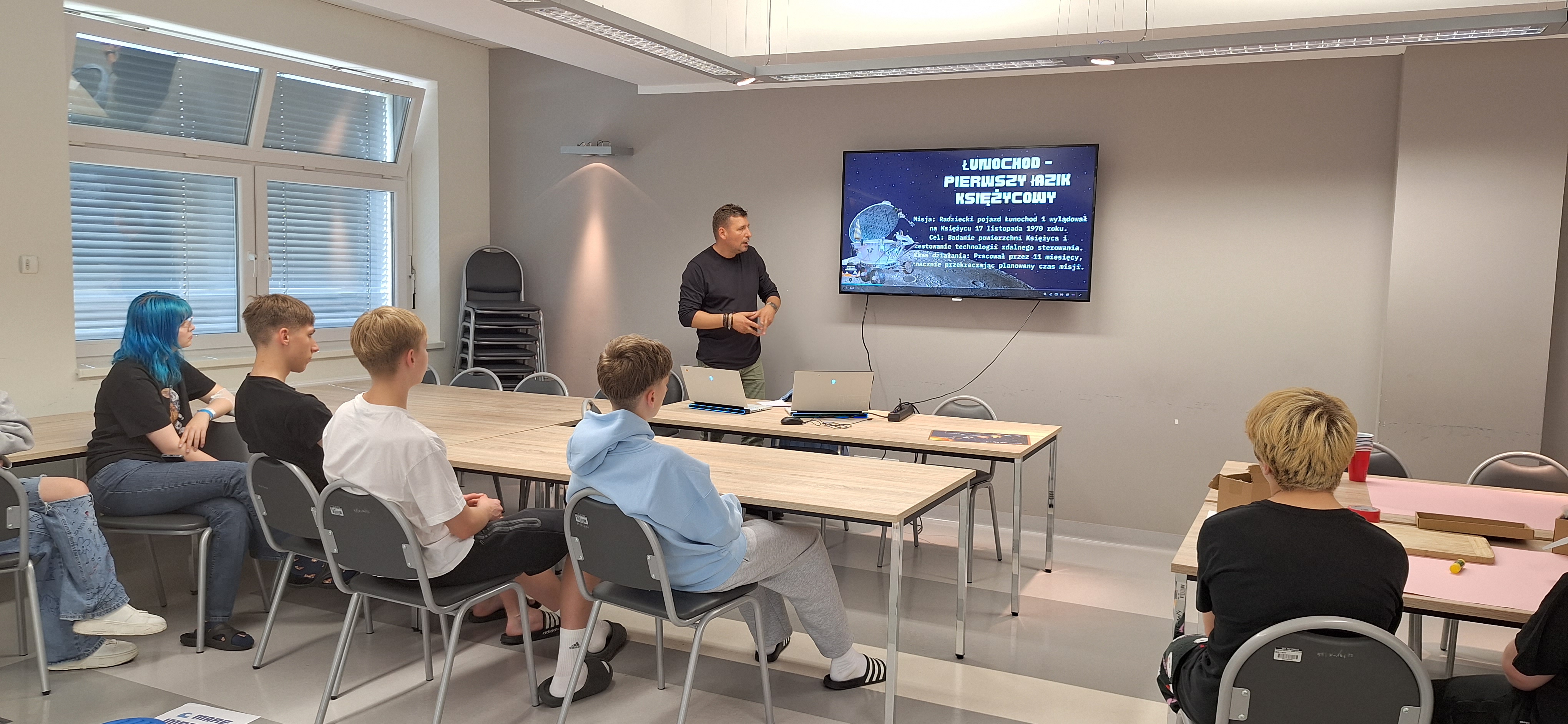 Czwarty dzień poświęcony był technologii. Uczniowie obejrzeli prezentację o robotach kosmicznych, a następnie – podzieleni na zespoły – budowali model łazika oraz programowali robota mBota2 do wykonania symulowanej misji kosmicznej. Zajęcia rozwijały kompetencje STEAM i uczyły współpracy.