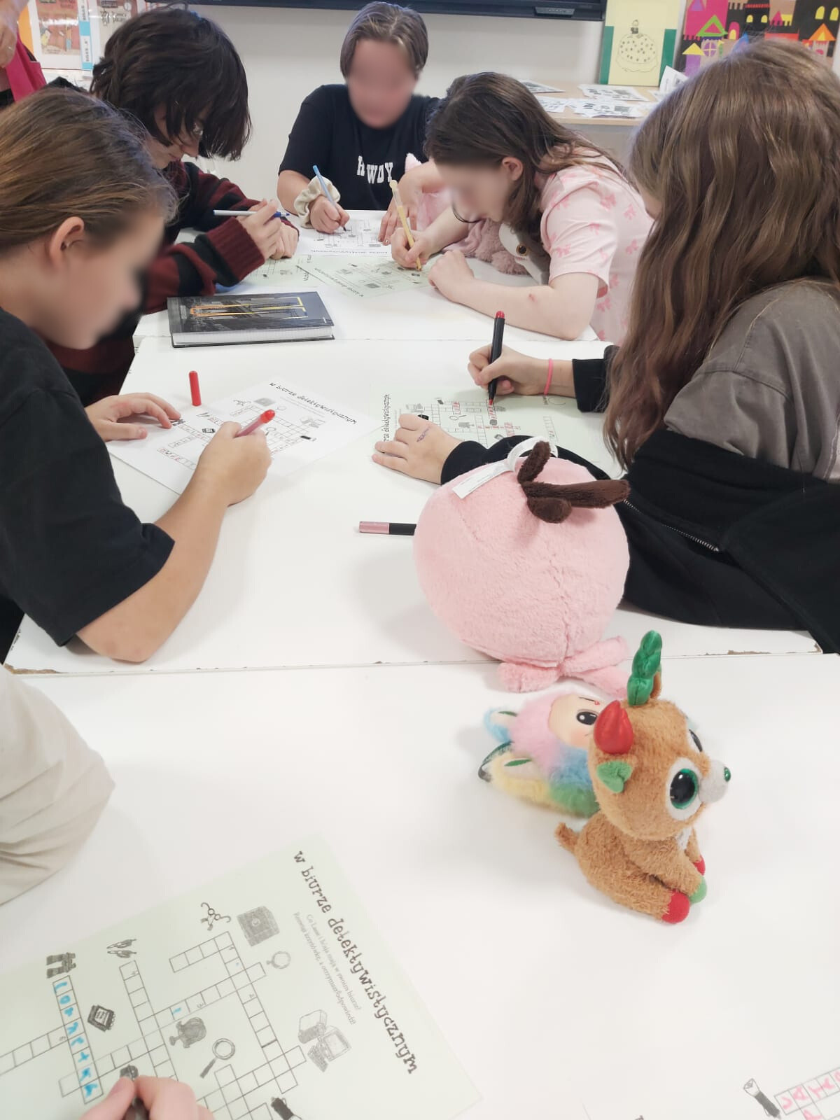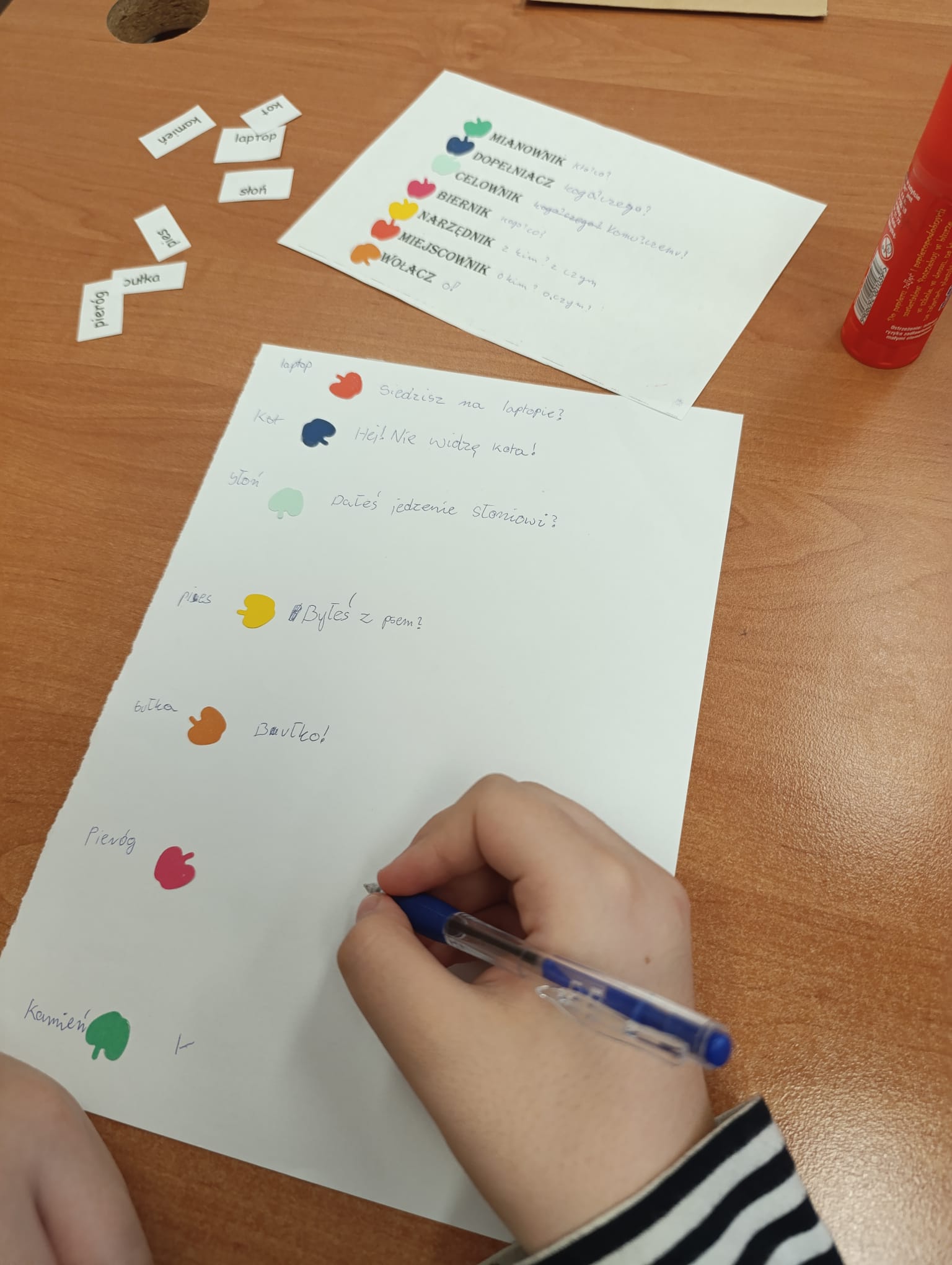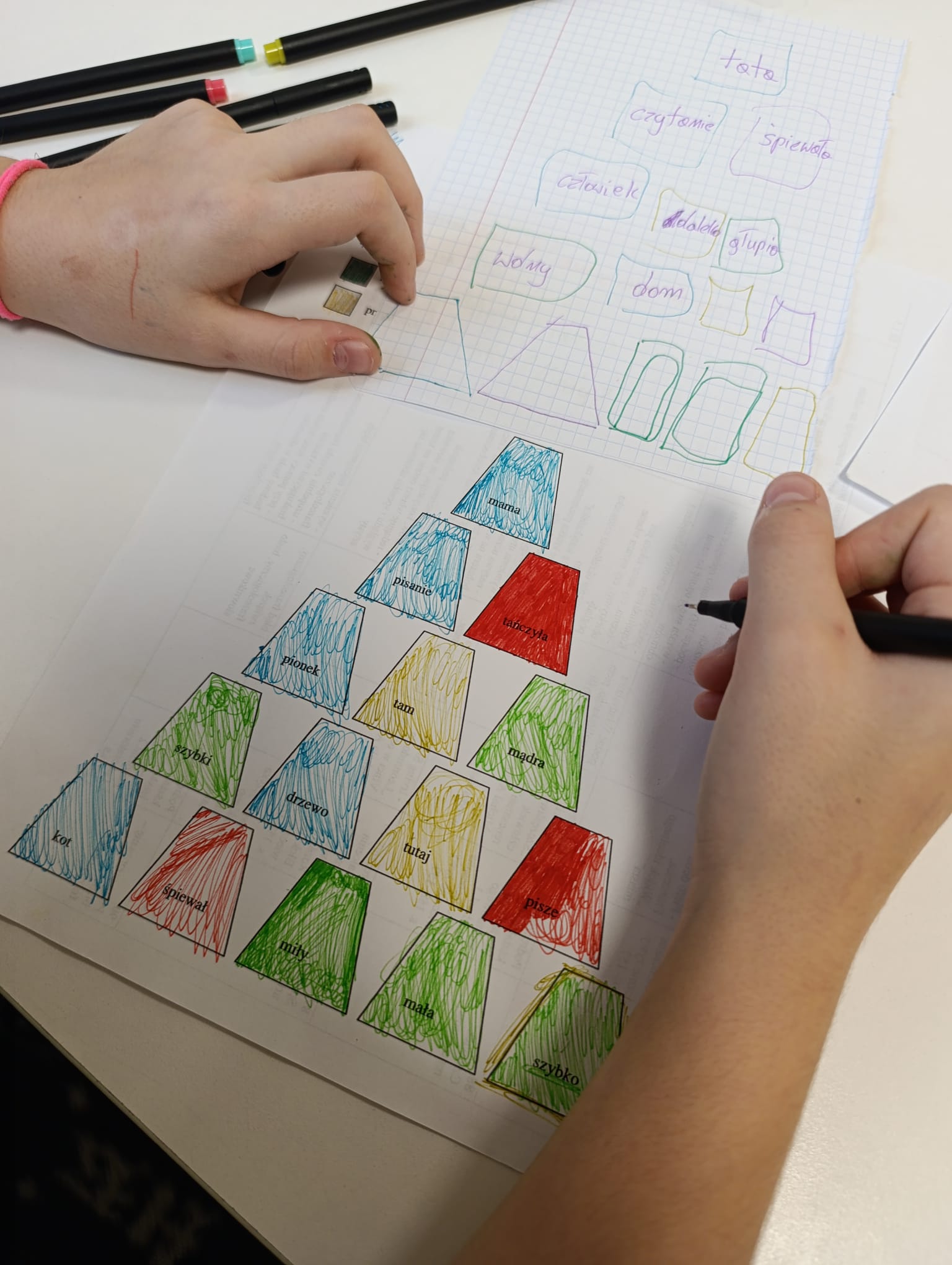Na języku polskim bawili się w „Kolorowe części mowy”, kodując i kolorując wyrazy zgodnie z szyfrem.