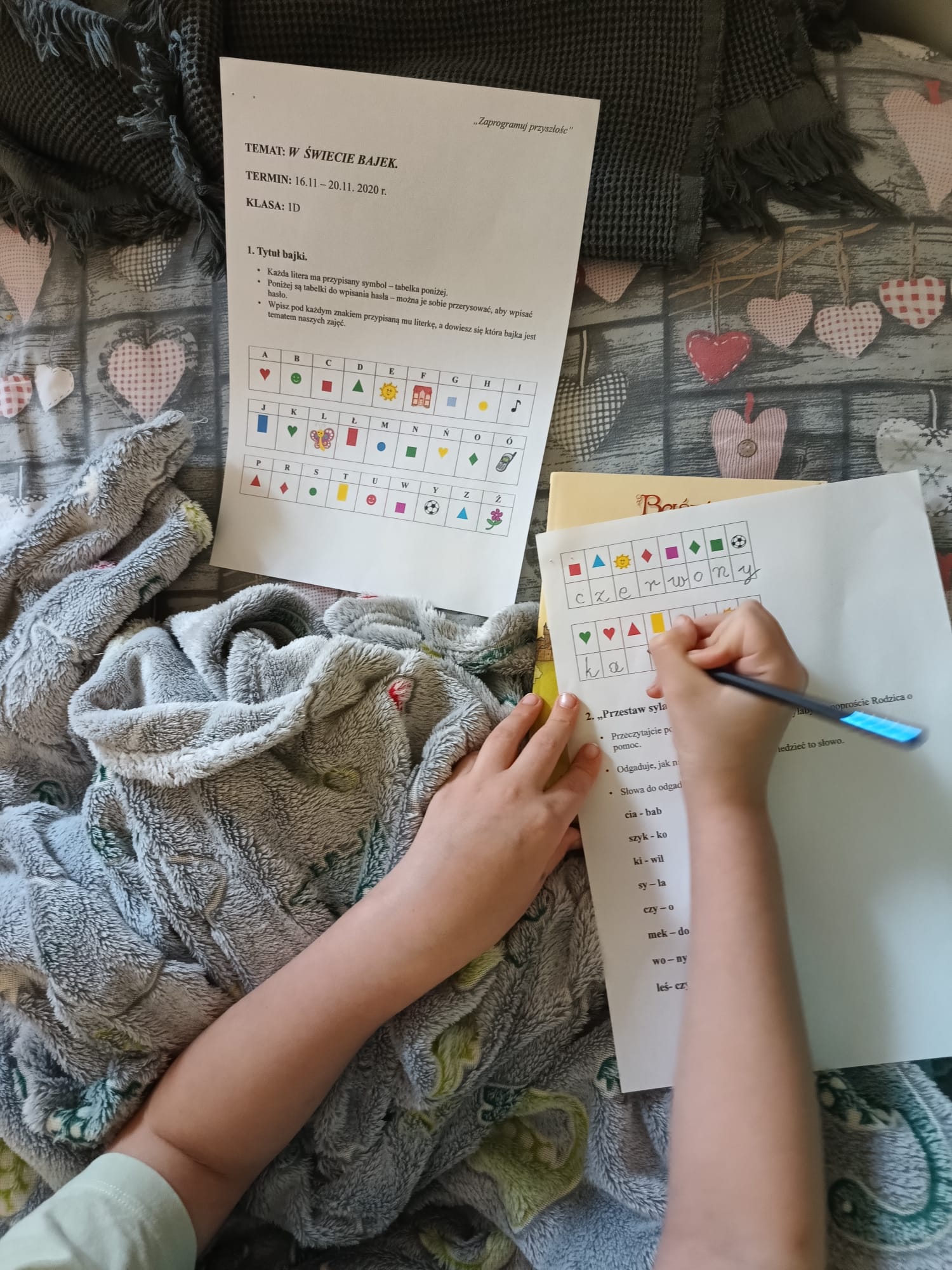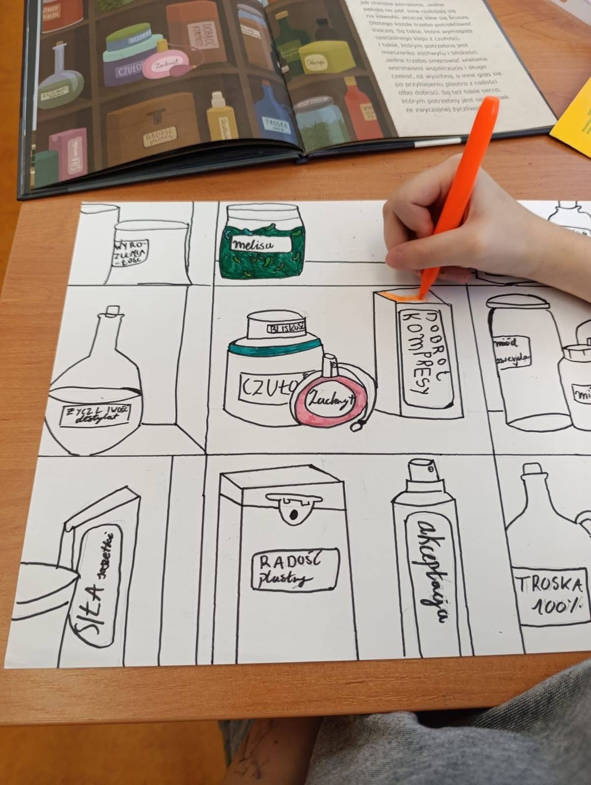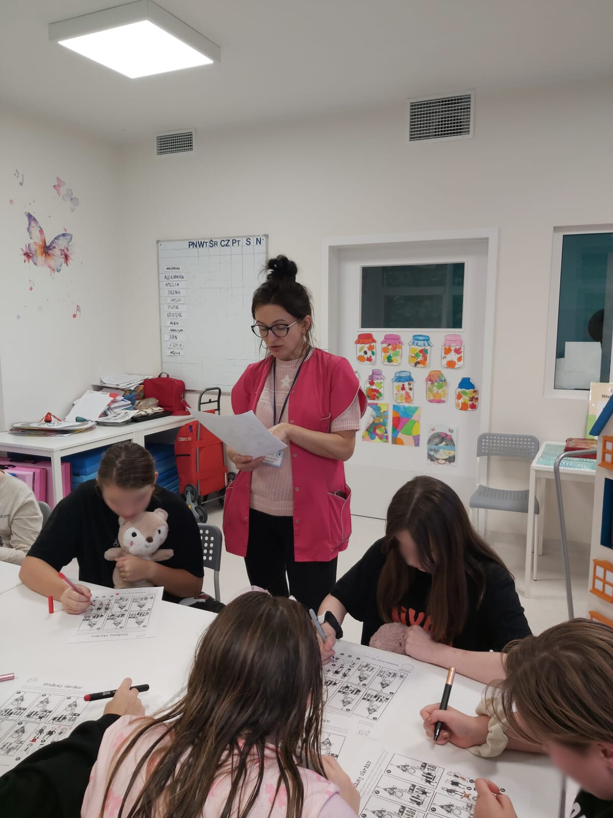 Na języku polskim bawili się w „Kolorowe części mowy”, kodując i kolorując wyrazy zgodnie z szyfrem.