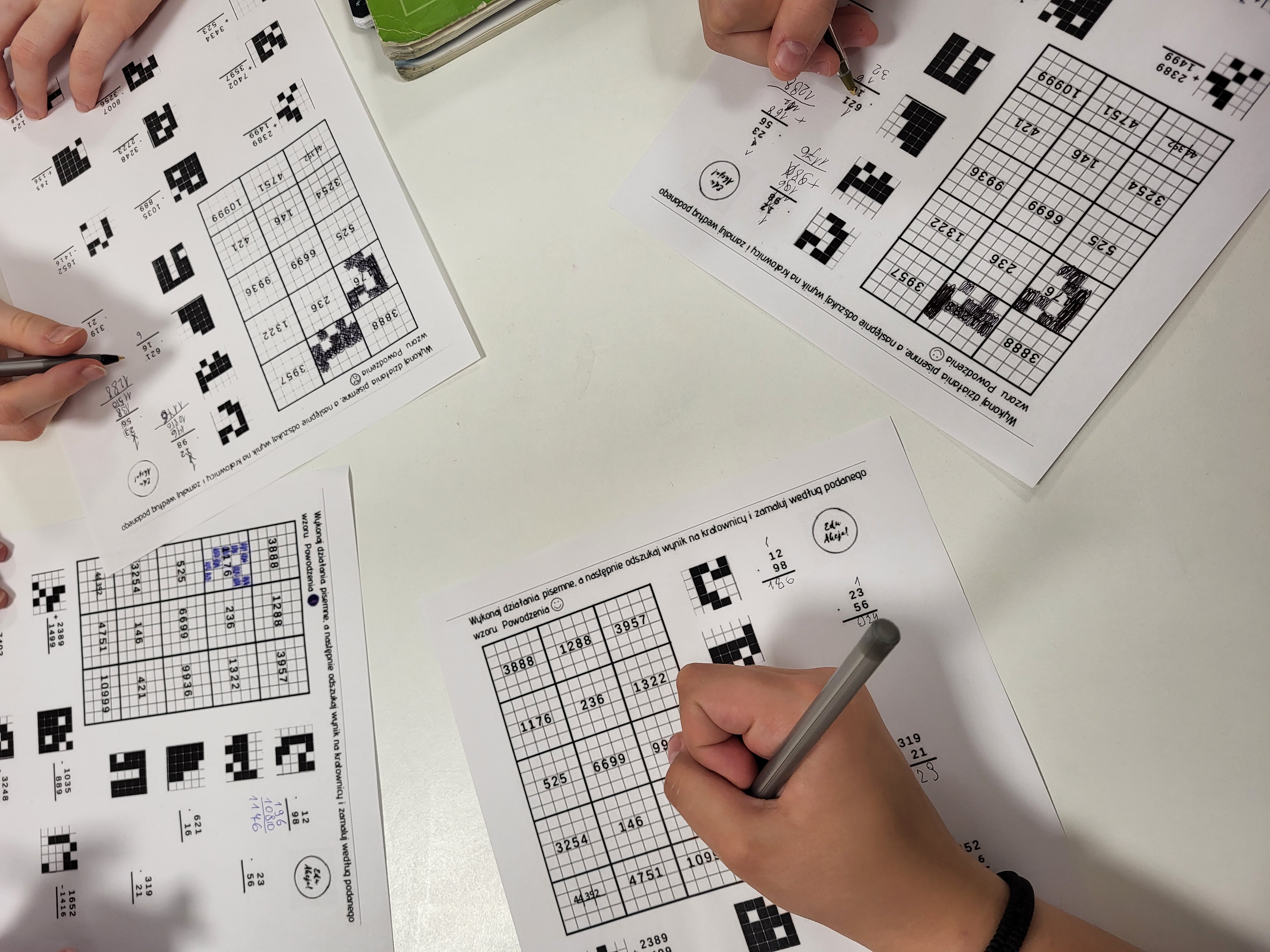 Na matematyce uczniowie rozszyfrowywali ukryte obrazki i rozwiązywali logiczne zadania.