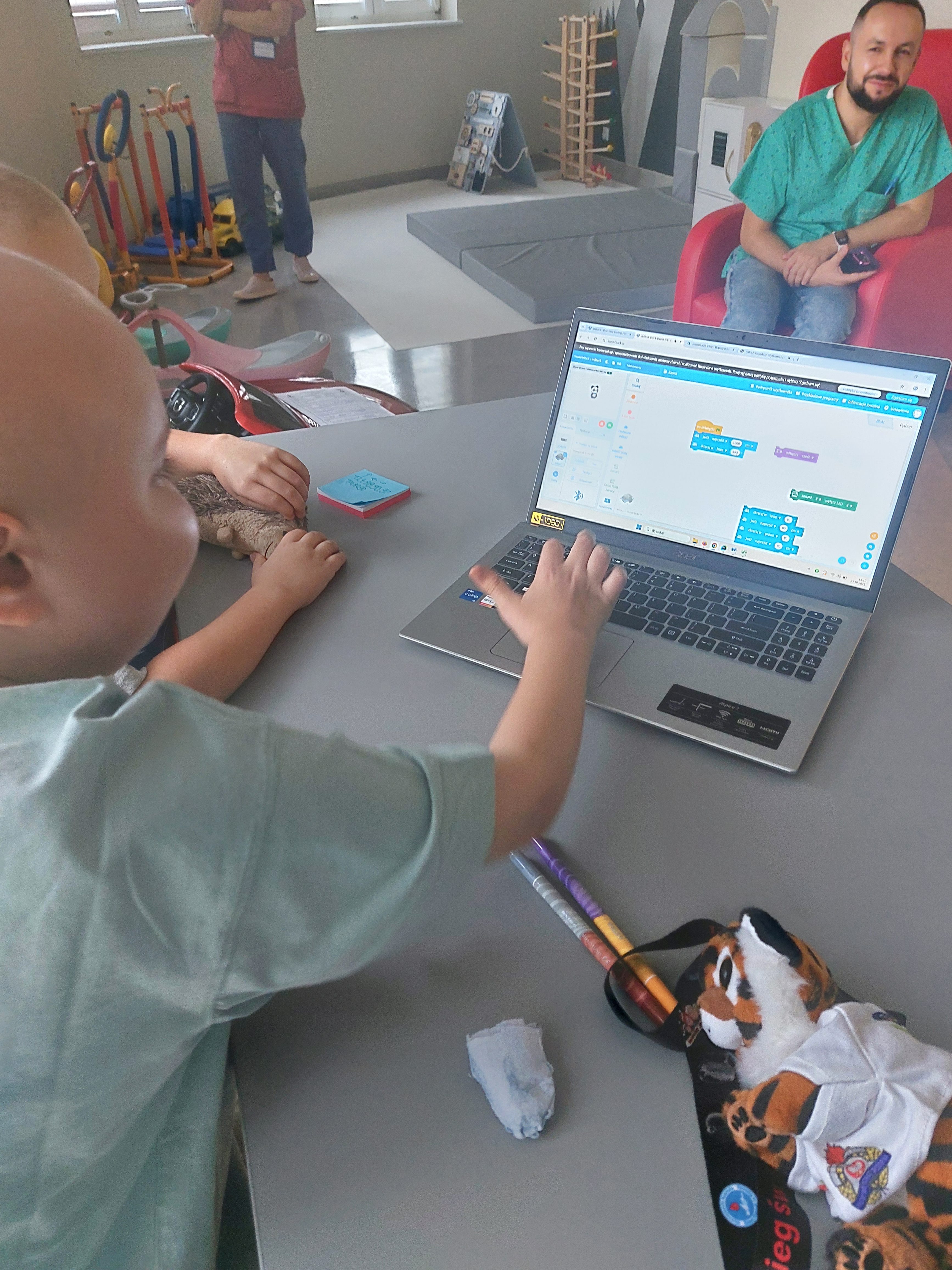 Na oddziałach szpitalnych nie zabrakło też kodowania na tabletach, pracy z interaktywną podłogą i robotami edukacyjnymi – dzięki czemu każdy, niezależnie od wieku i miejsca nauki, mógł spróbować swoich sił w programowaniu.