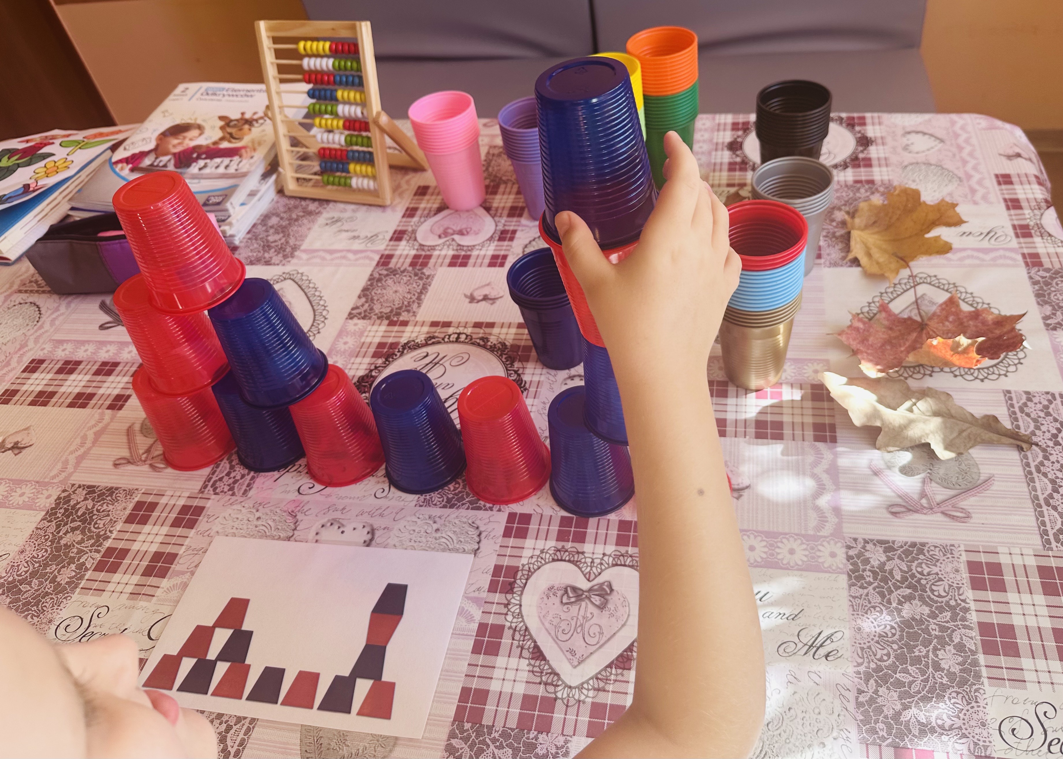 W zajęciach z edukacji wczesnoszkolnej królowały kubeczki, klocki i kolorowe wzory, dzięki którym najmłodsi rozwijali logiczne myślenie i uczyli się współpracy.