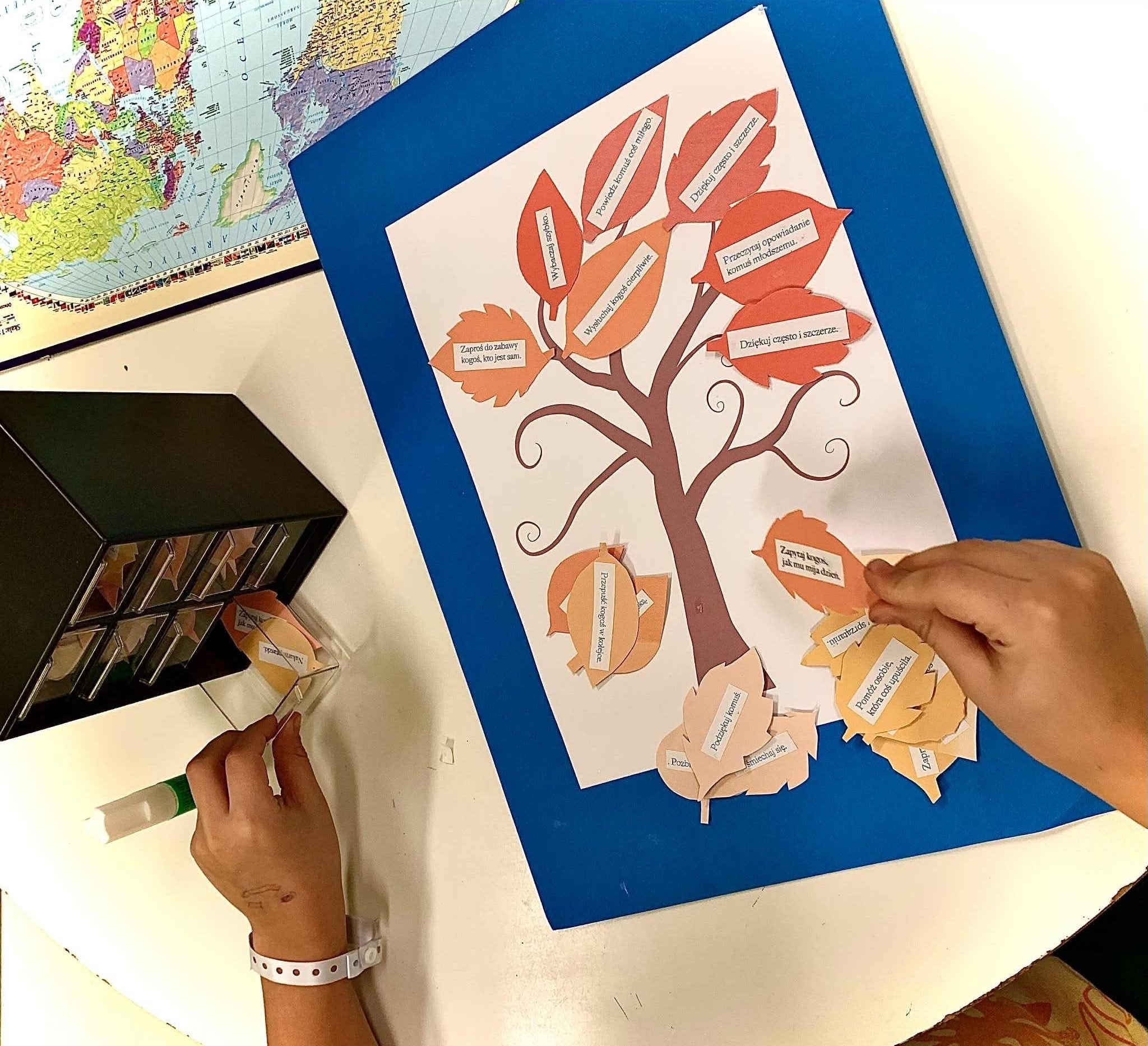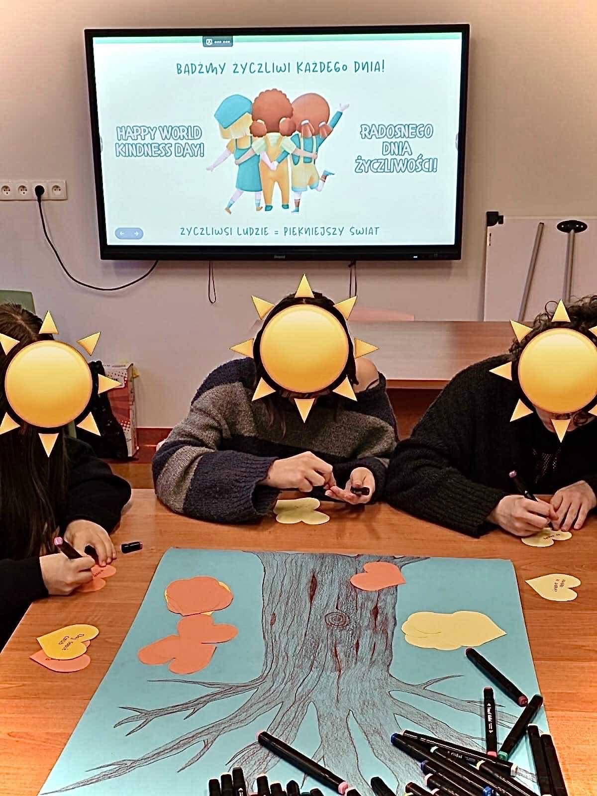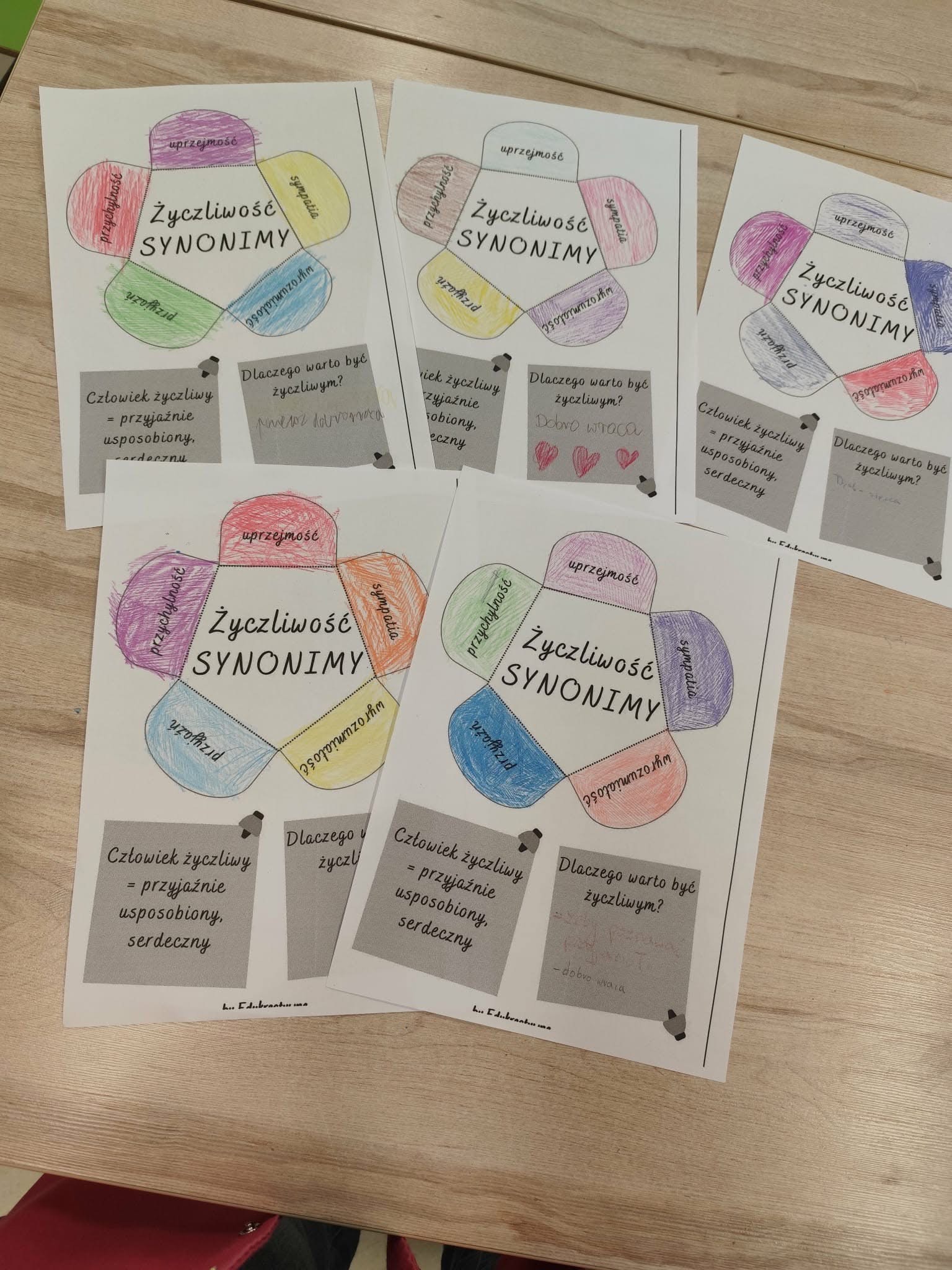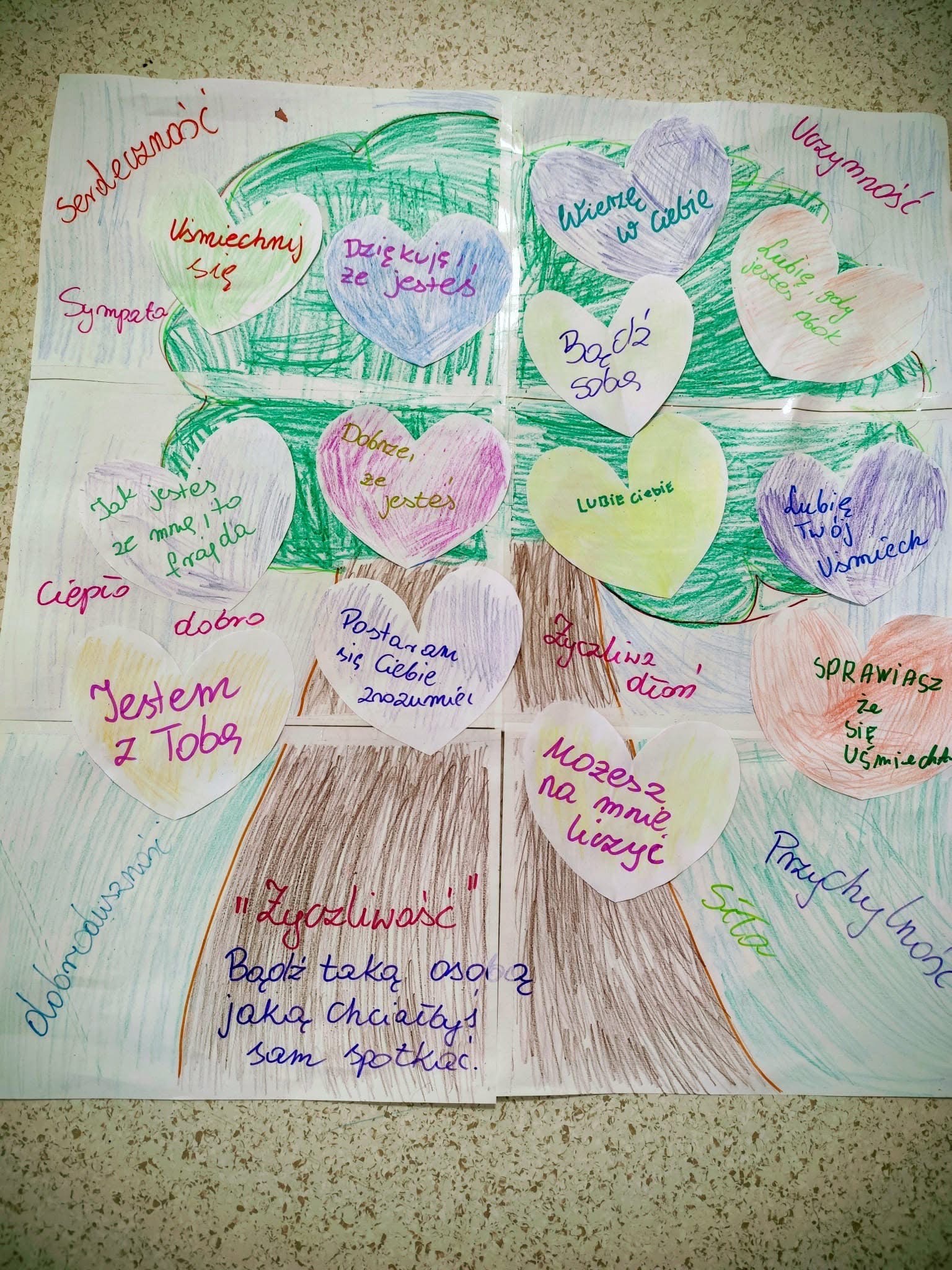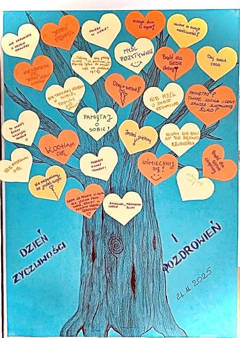 Bardzo dużo uśmiechu, serdecznej radości i miłych rozmów wywołały te nieduże karteczki – drobne gesty życzliwości ogromnie cieszą wszystkich! W świetlicach i dyżurkach pojawiły się paseczki z dobrym słowem do wzięcia dla siebie lub dla kogoś, kogo chce się ucieszyć. Na zajęciach „Dlaczego warto być życzliwym” powstało drzewo z koroną pełną serduszek z dobrymi myślami i życzliwymi gestami. Dzieci szyły prezenty dla swoich bliskich, wykonywały kartki z kwiatami, tworzyły drzewka z listkami-pomysłami na życzliwość na co dzień: uśmiechaj się, pomagaj, wspieraj. Zmieniajmy świat każdego dnia na lepsze dobrym słowem, wzajemną pomocą, uśmiechem:).