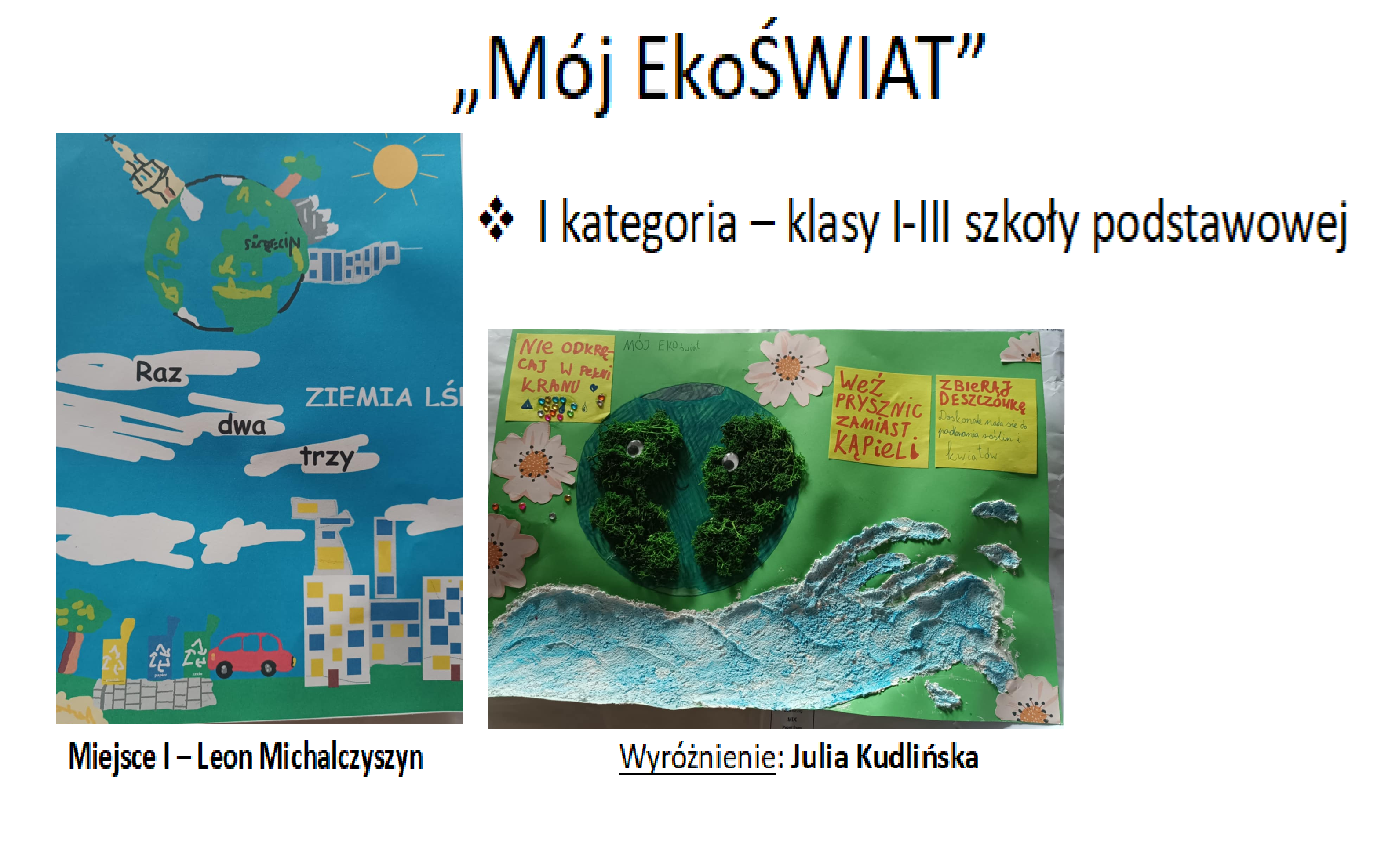 I miejsce: Ludwika Doczekalska, kl. 5, Szkoła Podstawowa nr 20, praca „Deptak Bogusława” oraz Faustyna Gawska, kl. 4, Katolicka Szkoła Podstawowa im. Jana Pawła II, praca „Jezioro Szmaragdowe”;