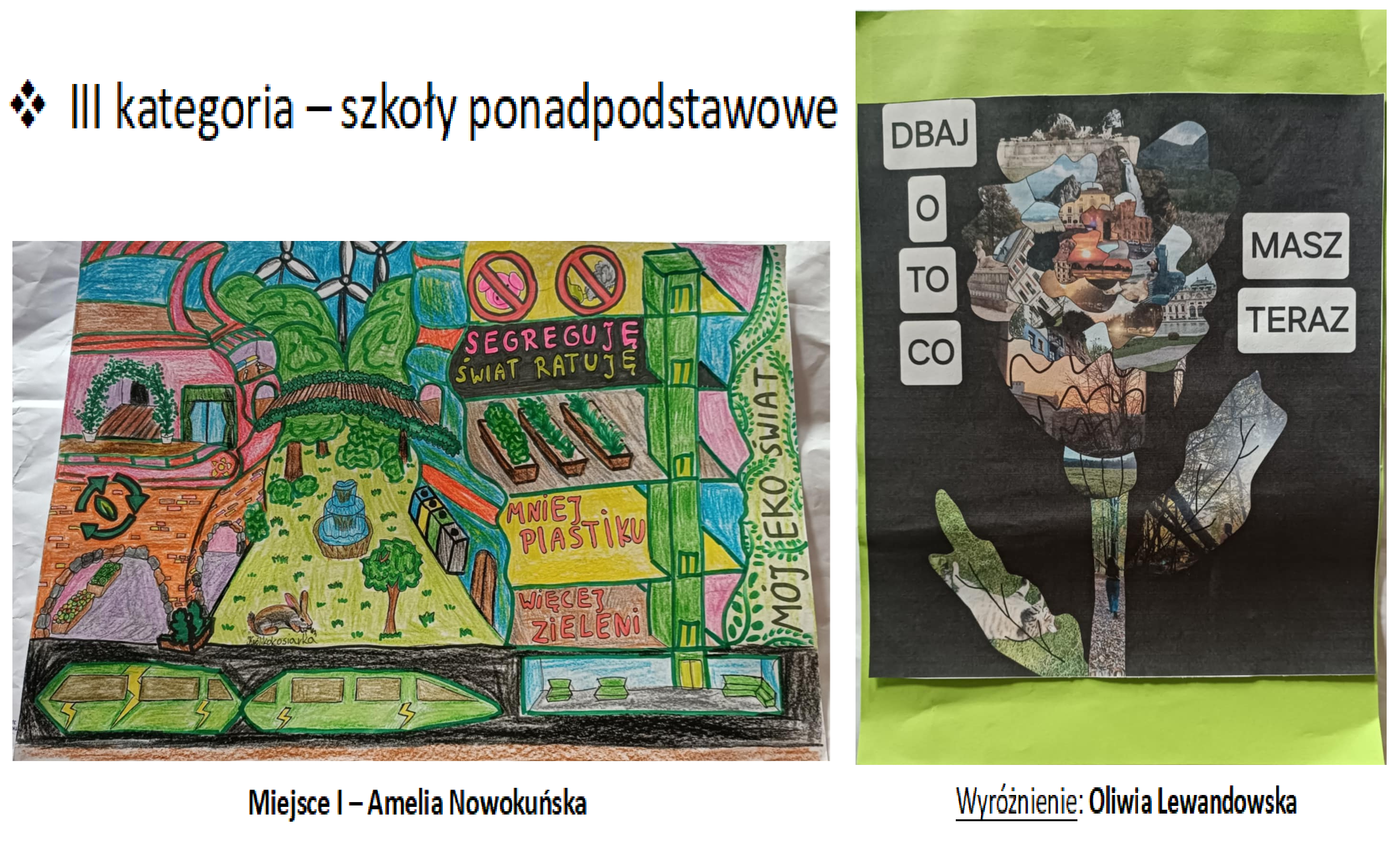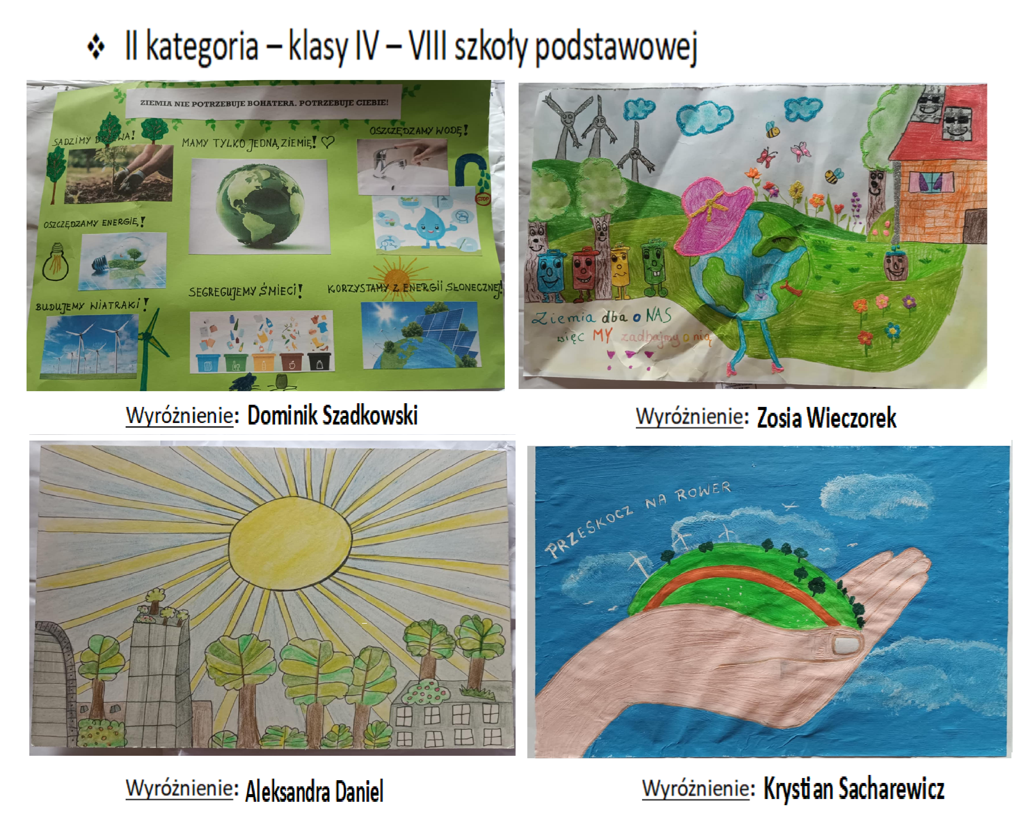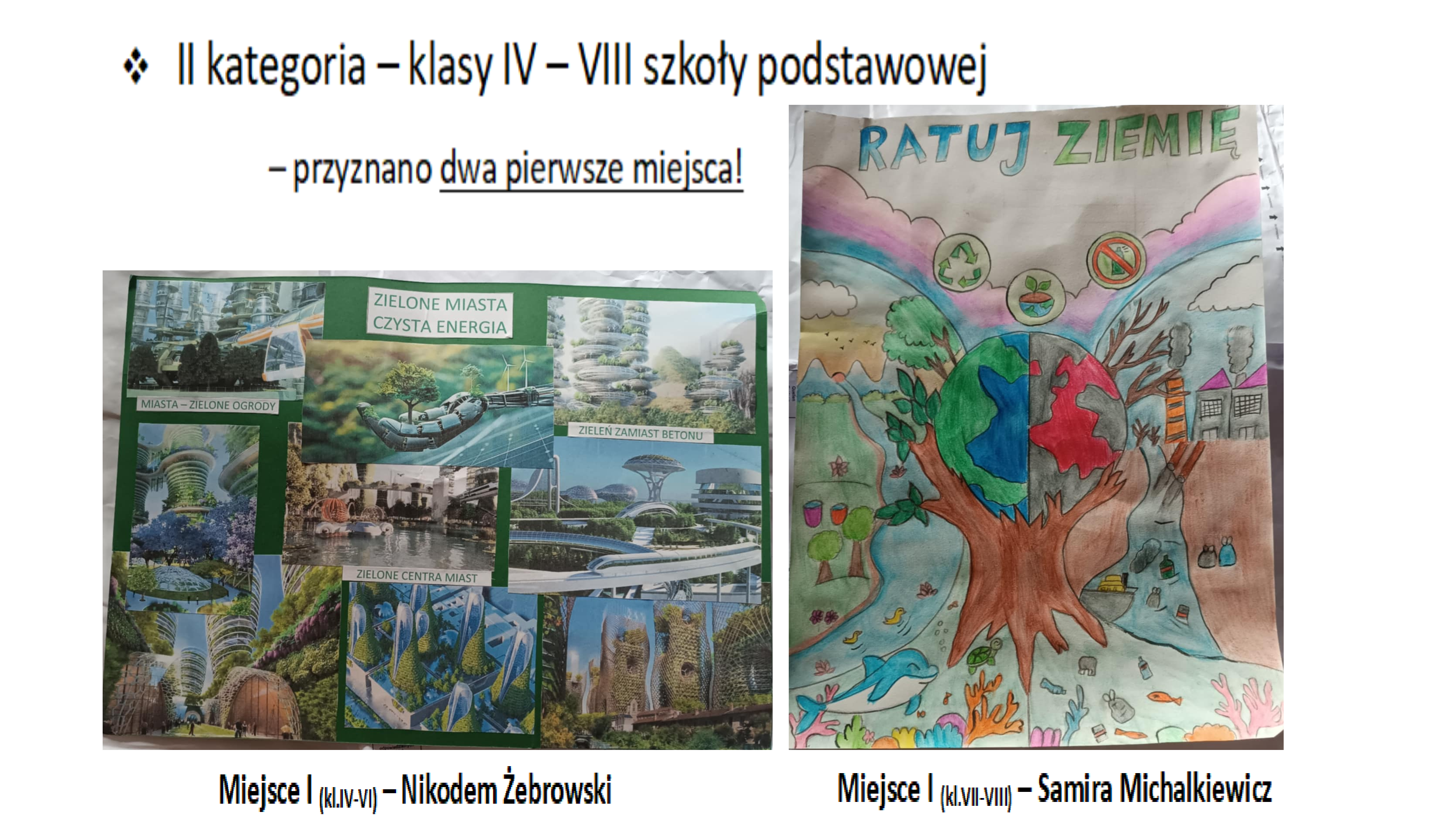 II miejsce: Julia Słomczyńska, kl. 3, Szkoła Podstawowa nr 24, praca „Holiday Park” oraz Bartosz Gorynia, kl. 2, Katolicka Szkoła Podstawowa im. Jana Pawła II, praca „Jezioro Szmaragdowe”;