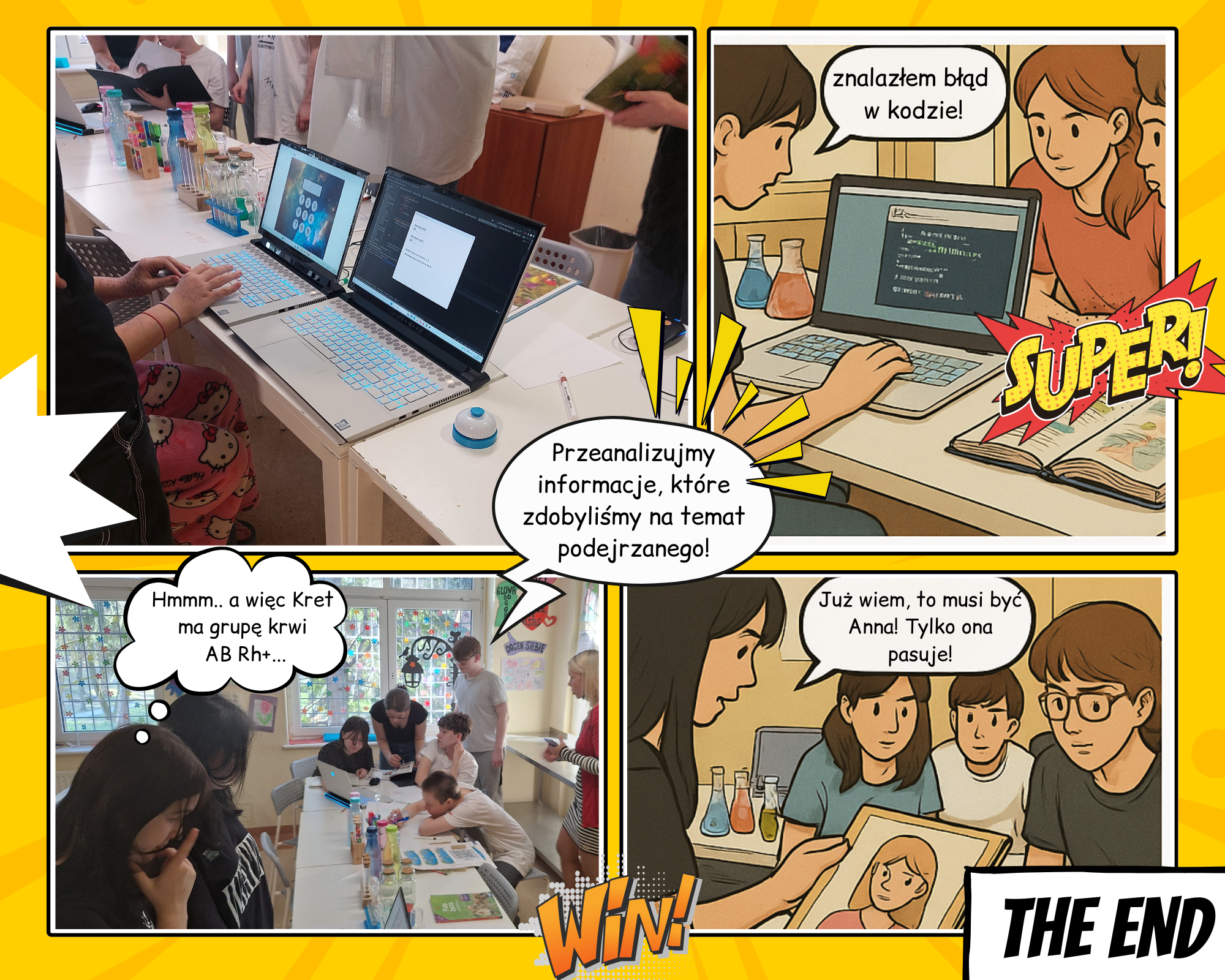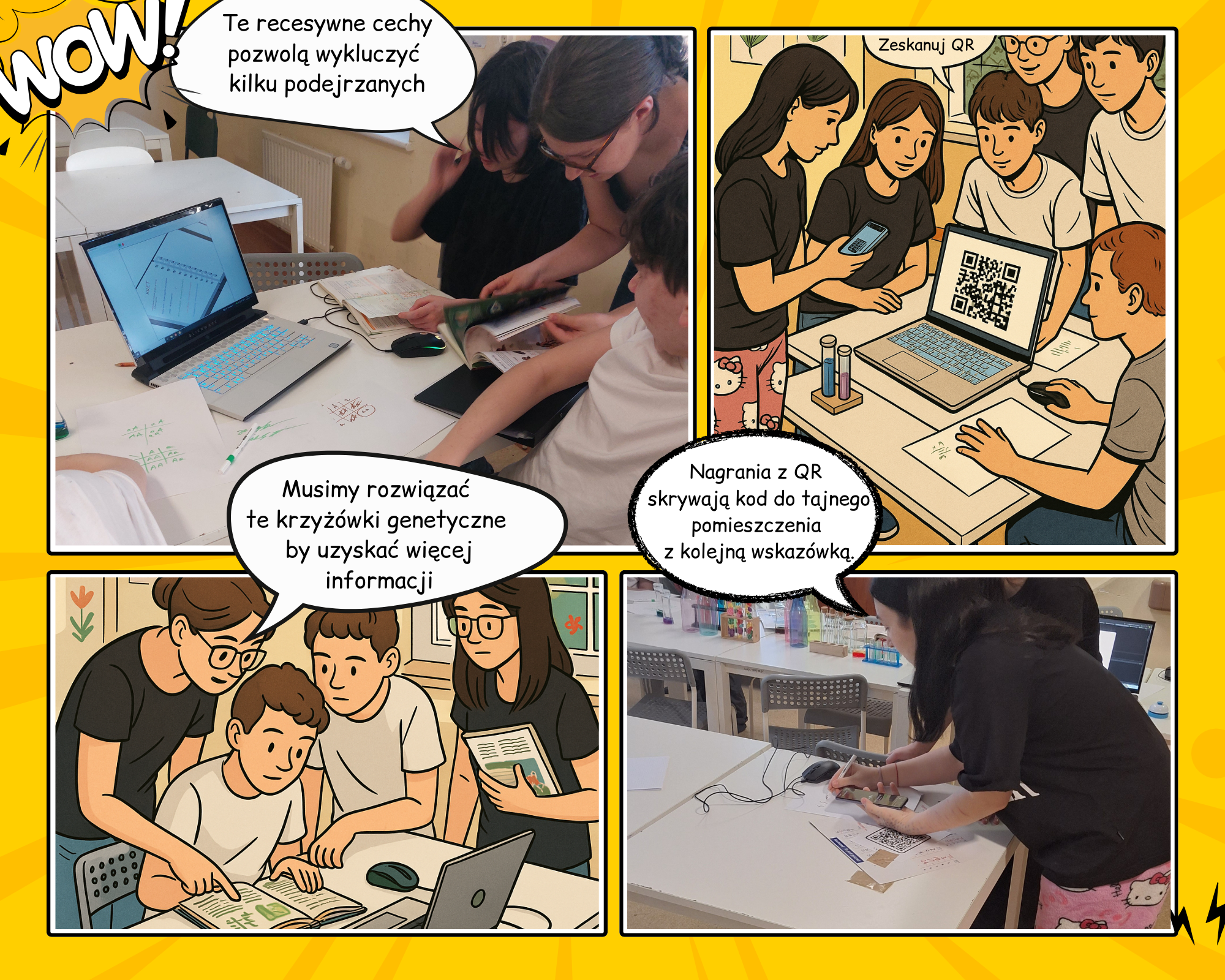 Cała rozgrywka była naszpikowana nowoczesnymi technologiami: AI, narzędziami do edycji obrazu i dźwięku, programami takimi jak Pycharm, Scratch, Google Drive, QR Code Scanner i wieloma innymi. Uczniowie musieli logicznie myśleć, wykorzystywać wiedzę z zakresu genetyki, analizować i wyciągać wnioski – a przy tym świetnie się bawili.